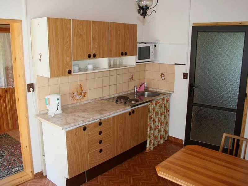 Interiér chaty je vkusně zařízen a poskytuje veškeré potřebné vybavení pro příjemný pobyt. Hosté mají k dispozici plně vybavenou kuchyň, kde si mohou připravit vlastní pokrmy, což je ideální pro rodiny s dětmi nebo skupiny přátel. Prostorná obývací místnost je vybavena pohodlným posezením, krbem a televizí, kde můžete relaxovat po dni stráveném venku. Ložnice jsou útulné a nabízejí dostatek prostoru pro pohodlný spánek.