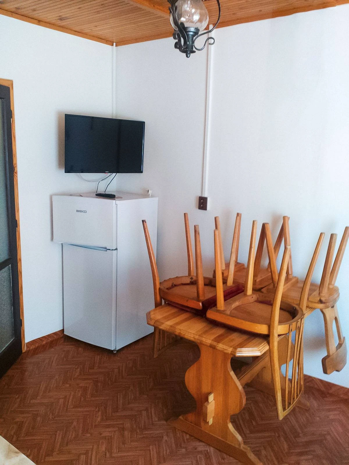 lednice, jídelní stůl.