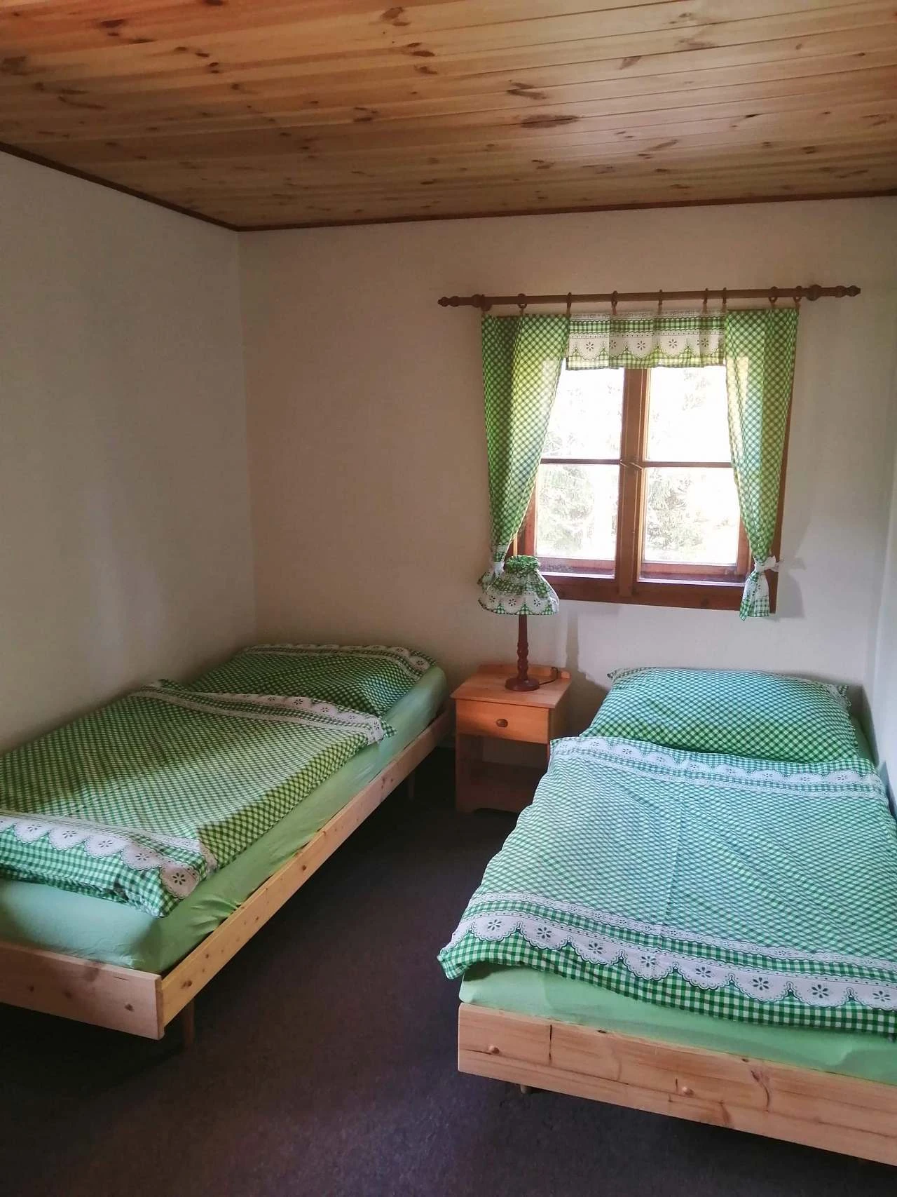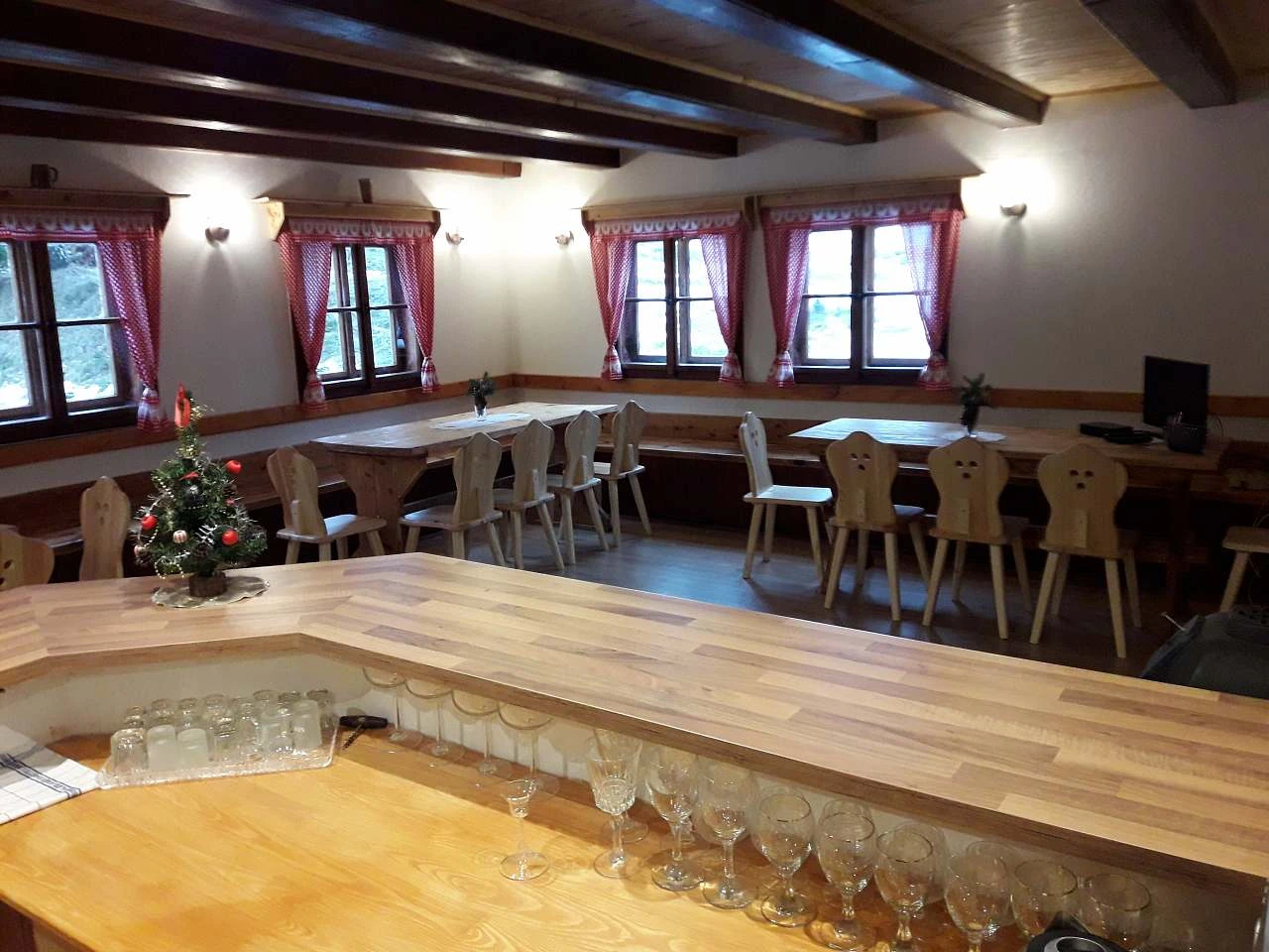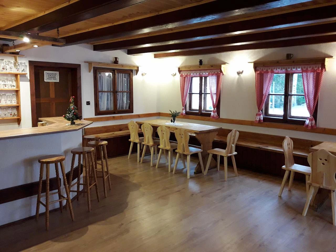 V přízemí chaty je společenská místnost s barem pro 30 míst k sezení, ke společenské místnosti náleží pánské a dámské WC. Prostorná veranda k uložení kočárku či kol, jednou čtyřlůžkový pokoj se sociálním zařízením, plně vybavená kuchyň (el. trouba sklokeramická dneska, digestoř, varná konvice, mikrovlnná trouba, chladnička s mrazákem a myčka). V patře jsou tři dvoulůžkové pokoje, dva třílůžkový a jednou čtyřlůžkový pokoj, všechny pokoje kromě jednoho třílůžkového mají vlastní sociální zařízení. Celková kapacita pro spaní je 20 osob, domácí mazlíček po dohodě.