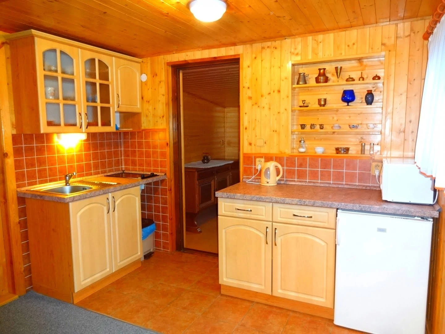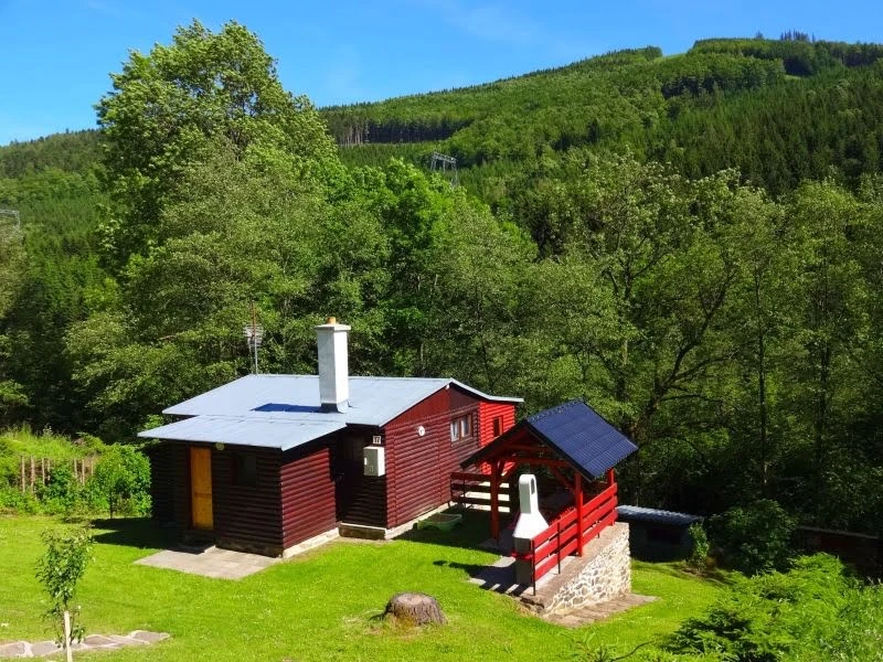 Chata Lanovka nabízí ubytování pro 4-5 osob, se 2 ložnicemi, koupelnou, kuchyní, jídelnou a verandou.