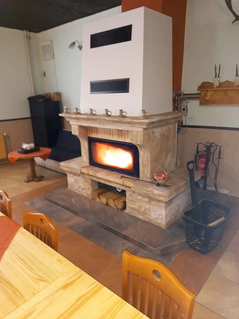 Celý objekt je vytápěný velkým krbem s rozvodem ústředního topení.