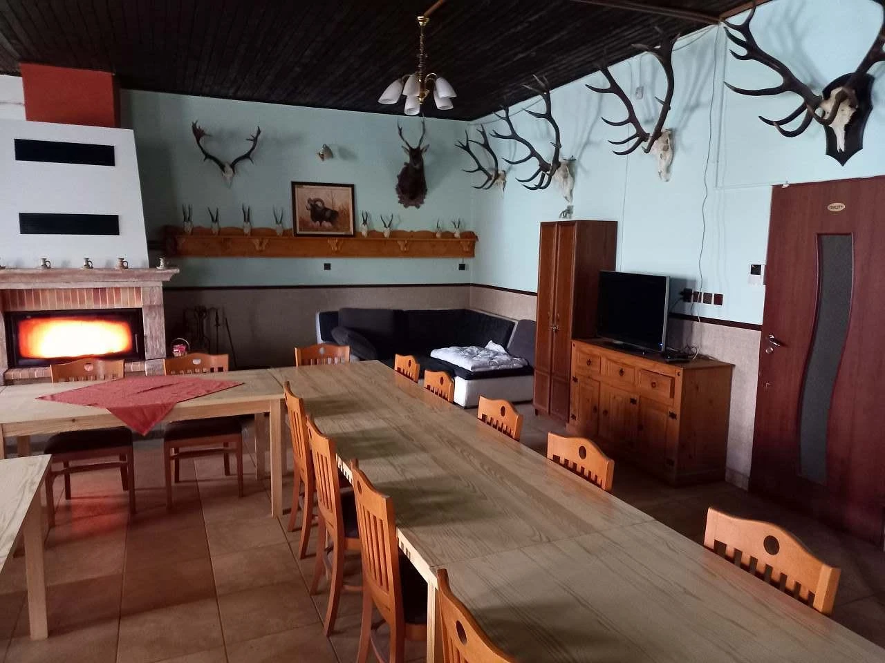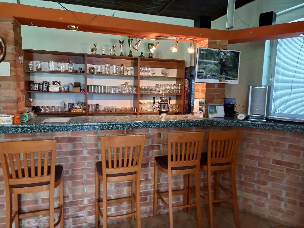 V přízemí je společenský sál s plně vybaveným barem s výčepním zařízením a lednicemi. V sále se nachází rohová pohovka s televizí. Kuchyň je vybavena dvěmi plynovými sporáky, velkou elektrickou troubou, mikrovlnkou, lednicemi a mrazáky. Veškeré kuchyňské potřeby jsou plně k dispozici. Myčka a pračka se nachází v umývárně.