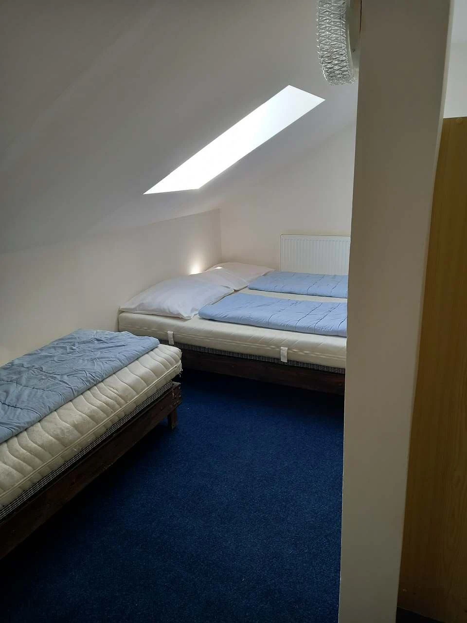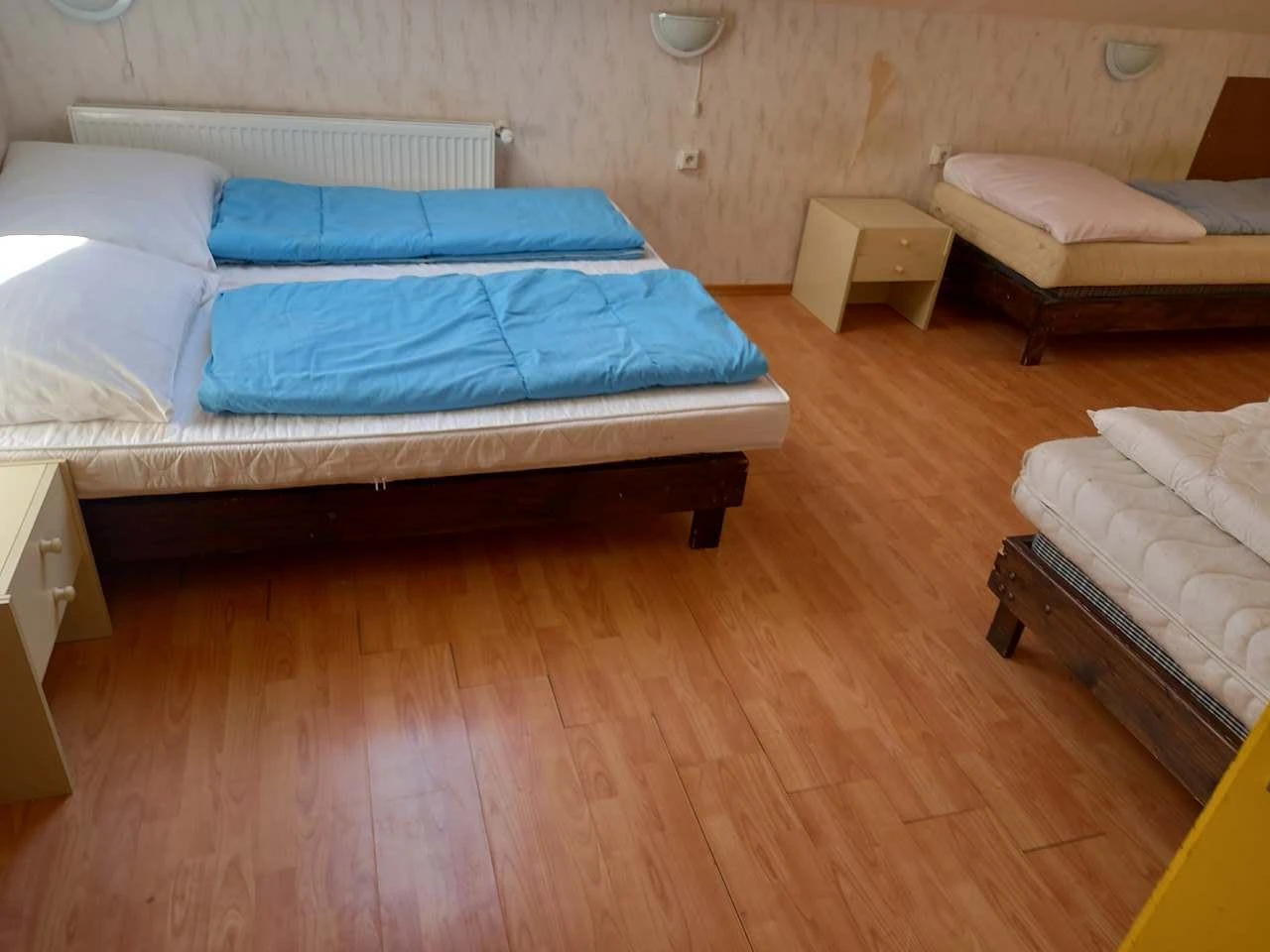 V prvním patře se nachází 6 samostatných pokojů s kapacitou 18lůžek. Pokoj č. 1.Dvoulůžkový, č. 2.třílůžkový, č. 3.čtyřlůžkový, č. 4.dvoulůžkový, č. 5 čtyřlůžkový, pokoj 6.Dvoulůžkový