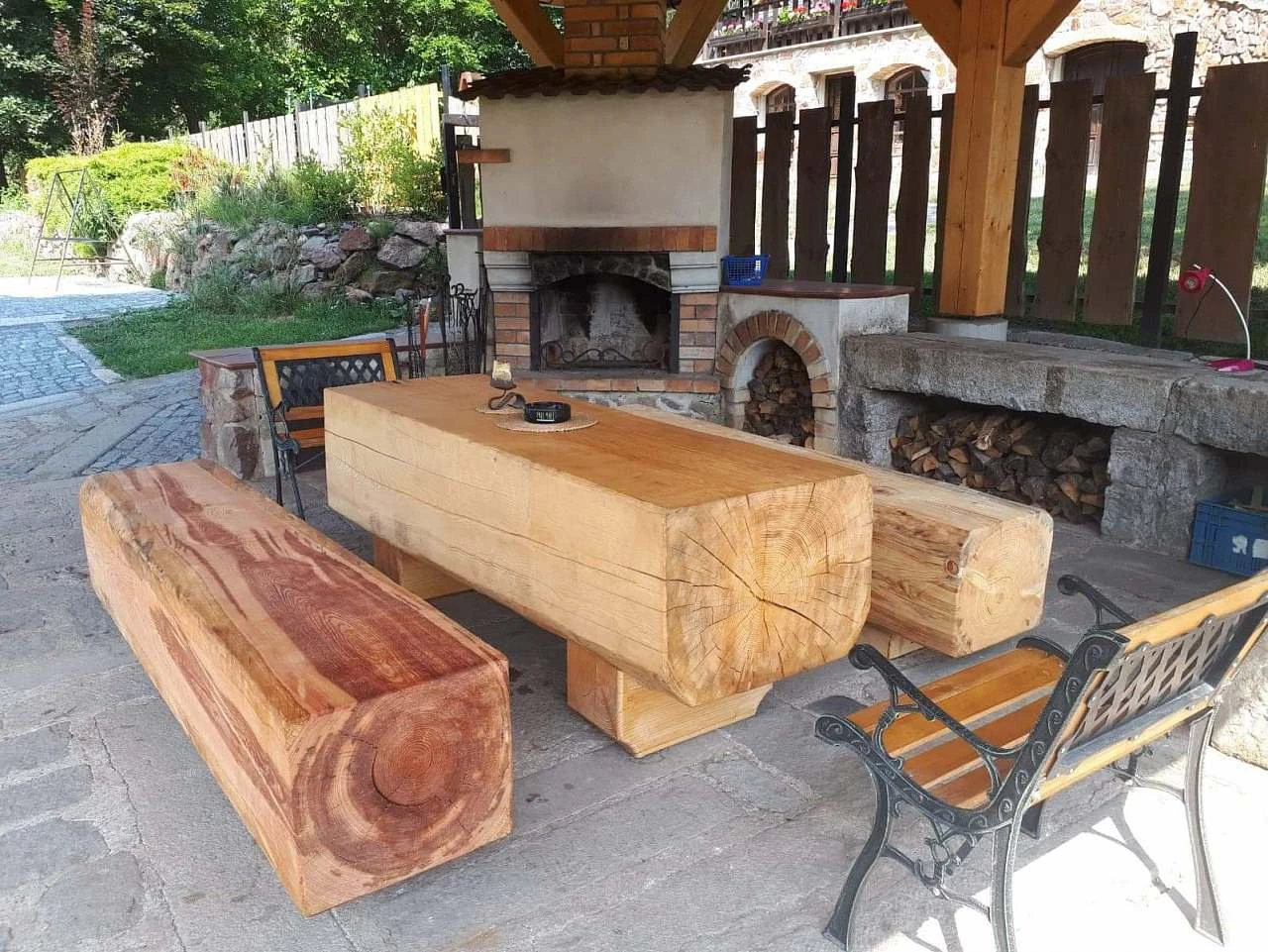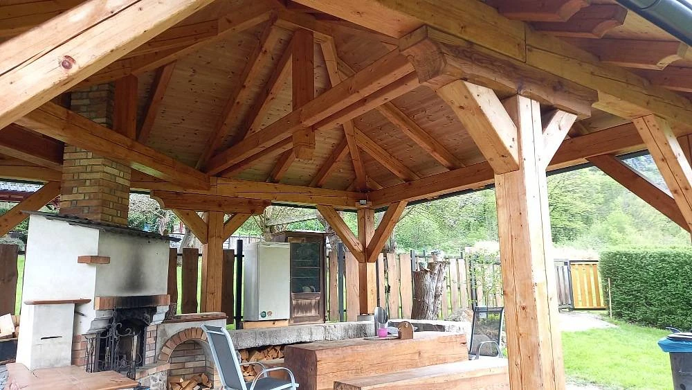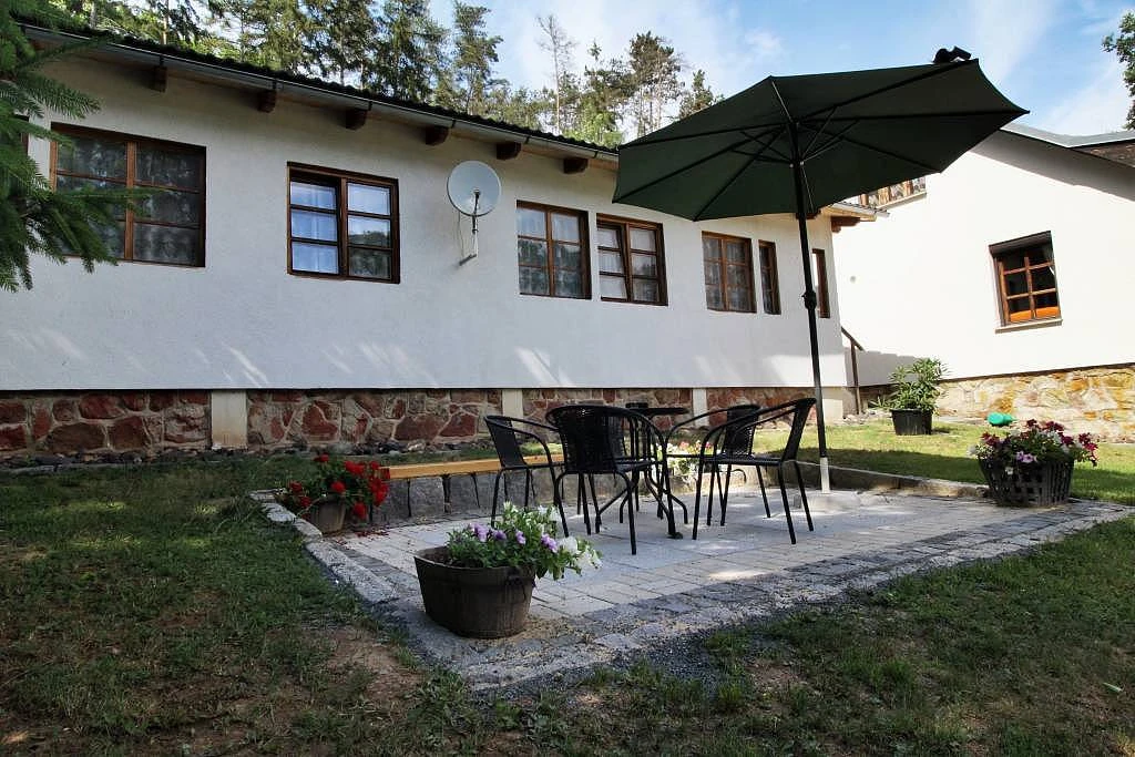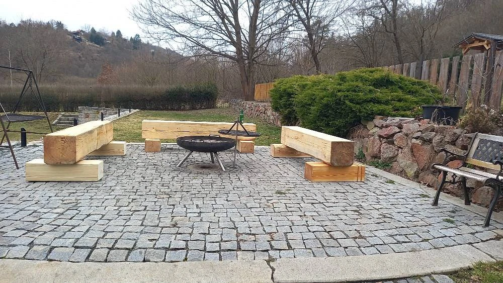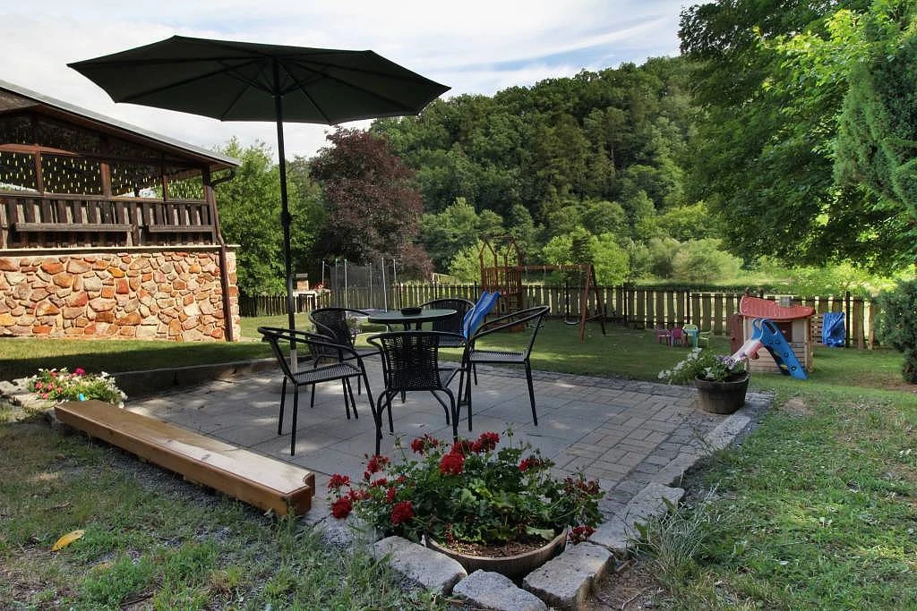 Na pozemku se nachází zastřešená terasa, kde si můžete vychutnat společné chvíle, nebo využít ohniště s posezením k přípravě opékaných specialit.