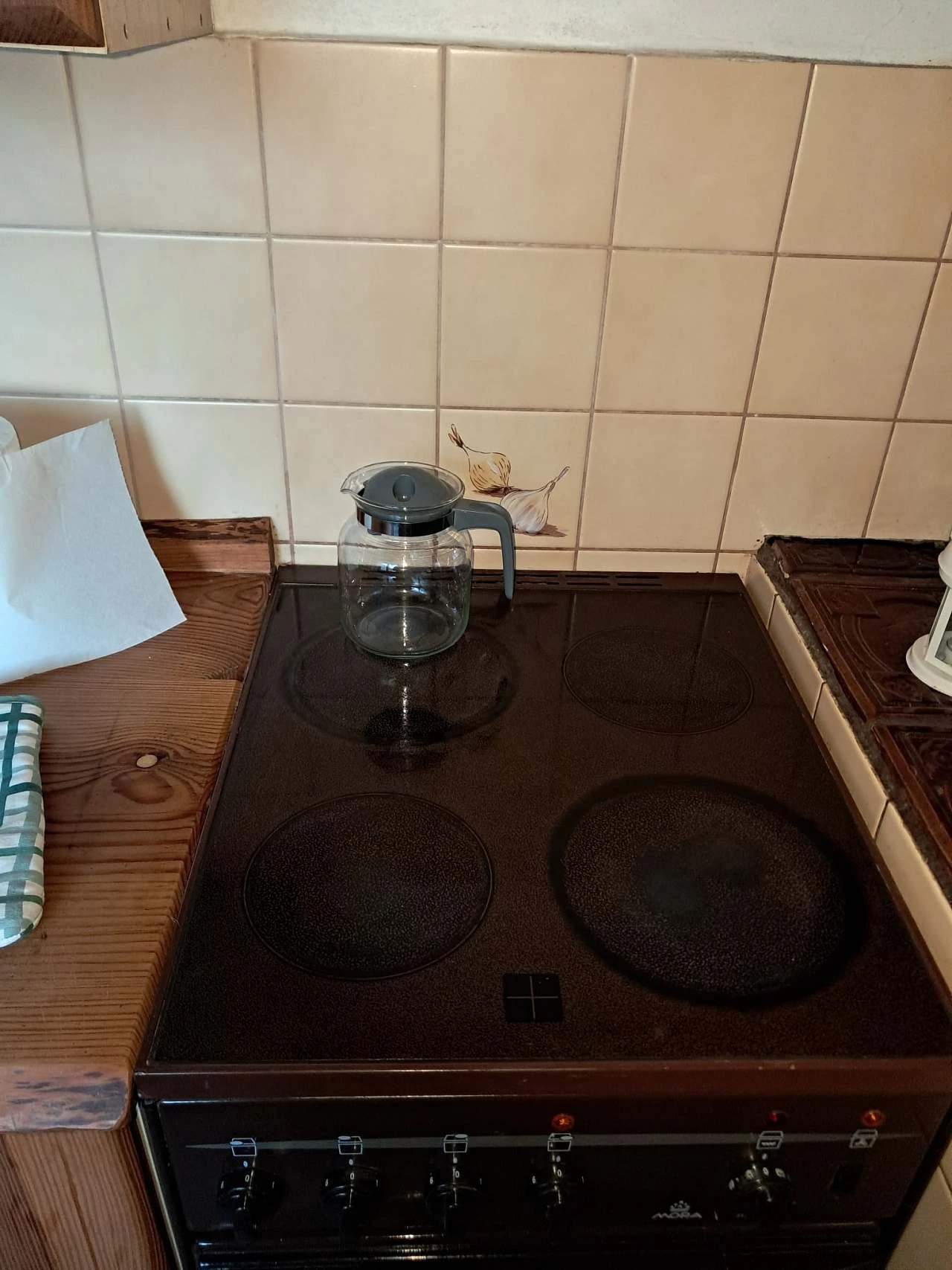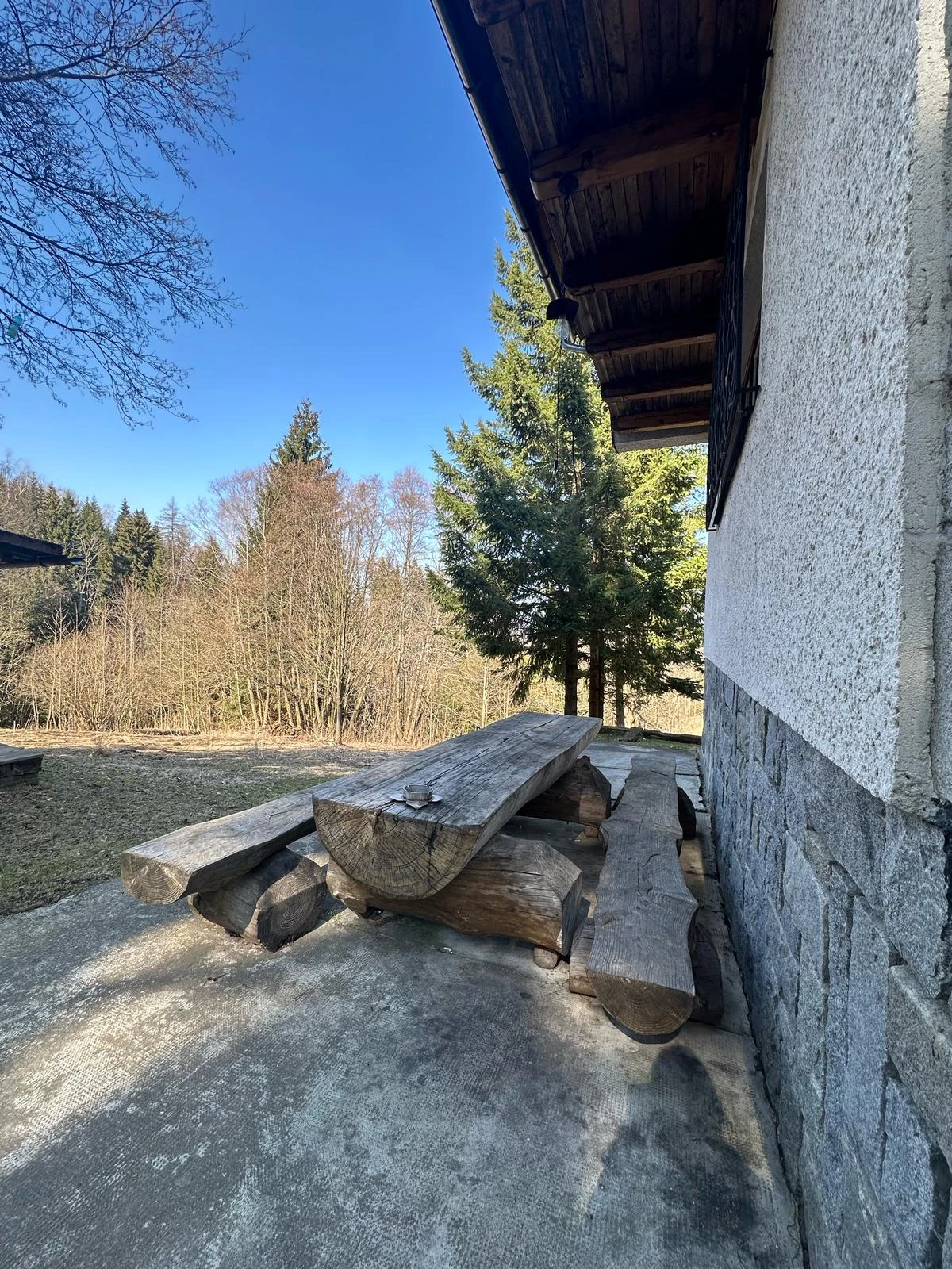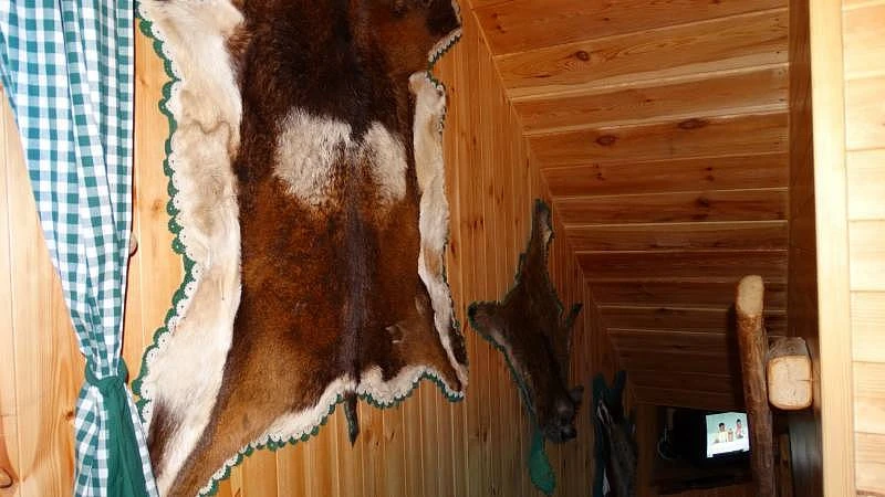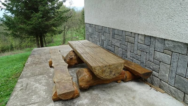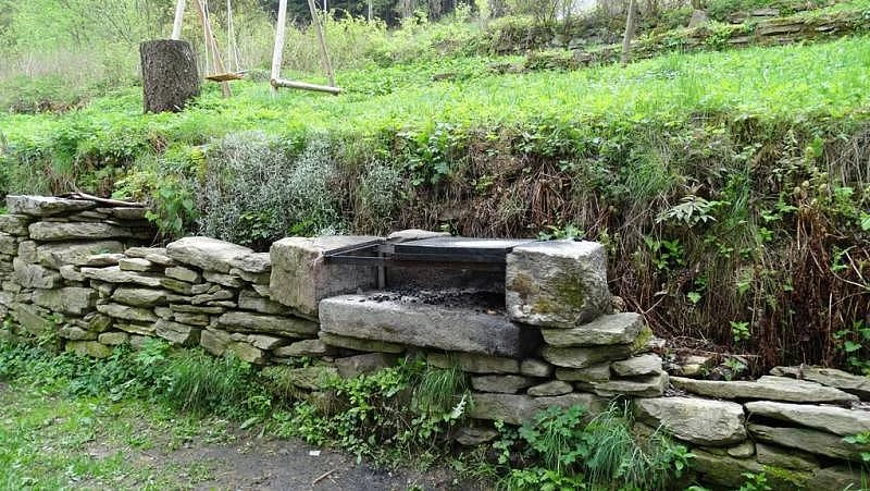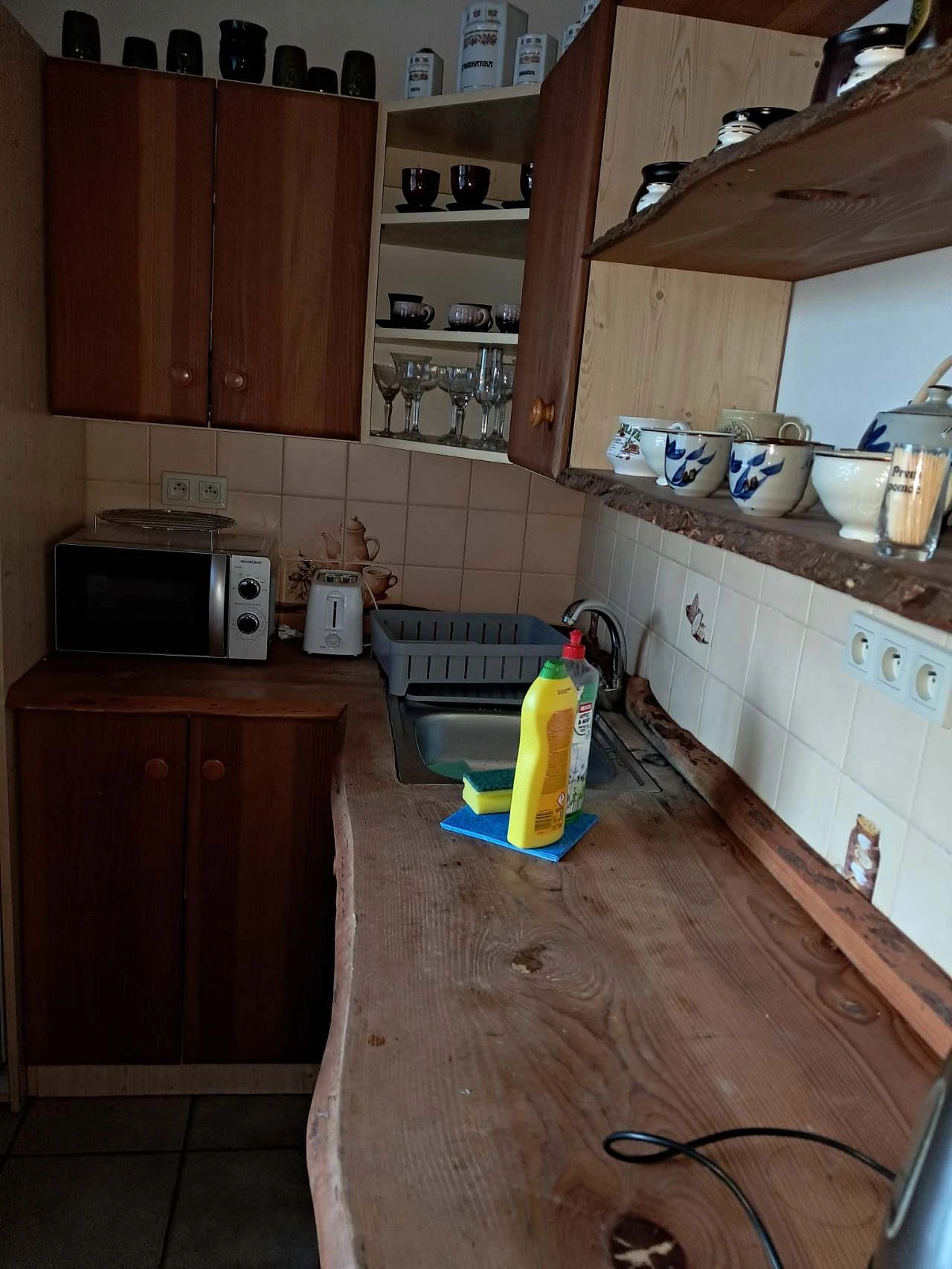 - Přízemí: Plně vybavená kuchyň (sporák, mikrovlnná trouba, lednice s mrazákem, rychlovarná konvice, toastovač, nádobí) a společenská místnost s jídelním stolem, krbem, pecí, televizí se satelitem a DVD přehrávačem.
