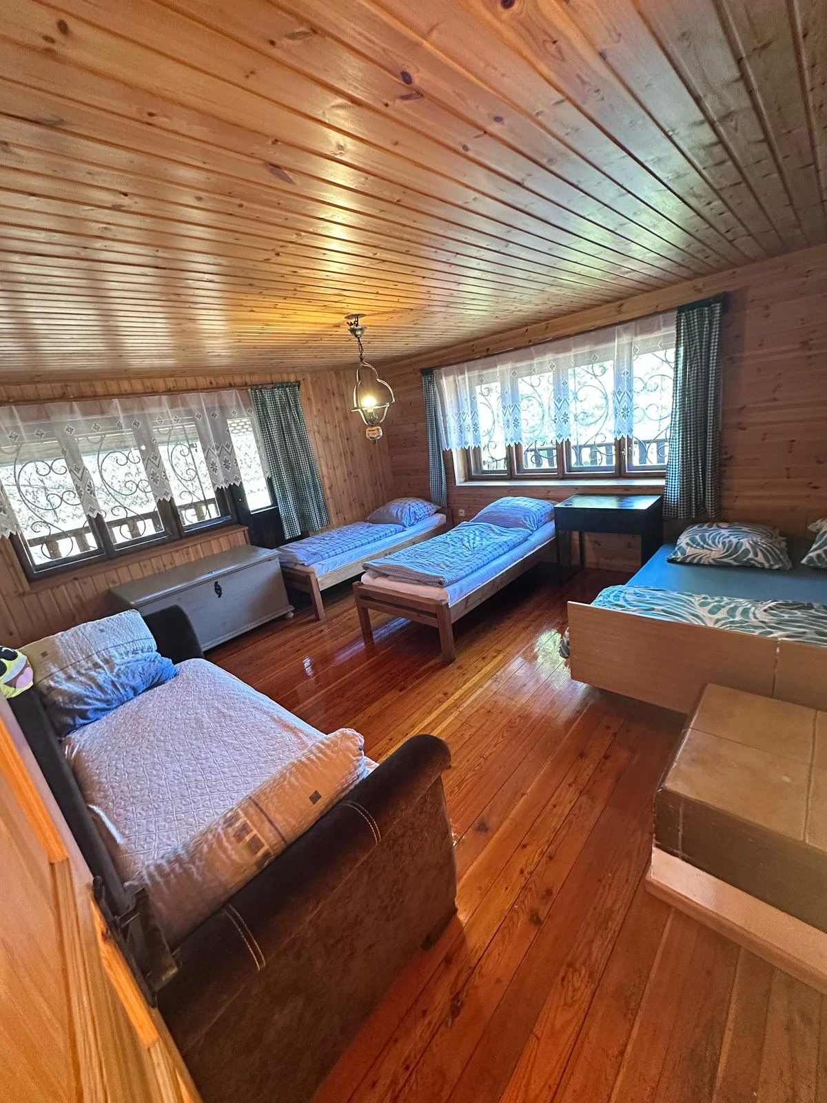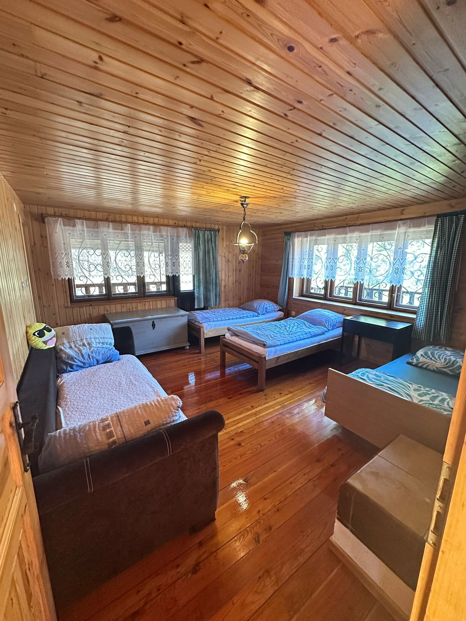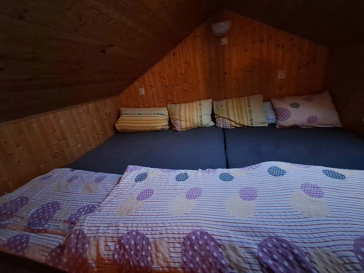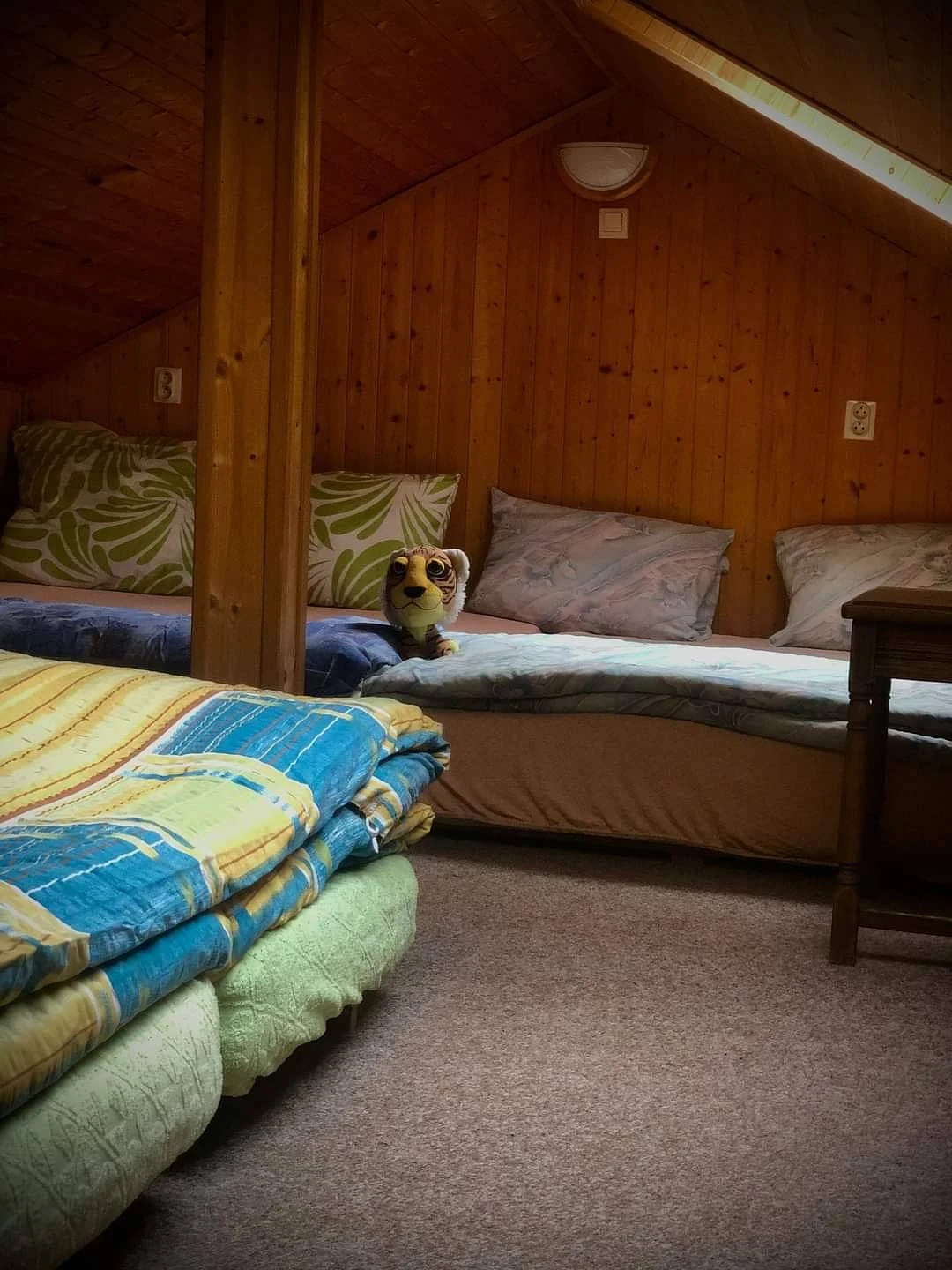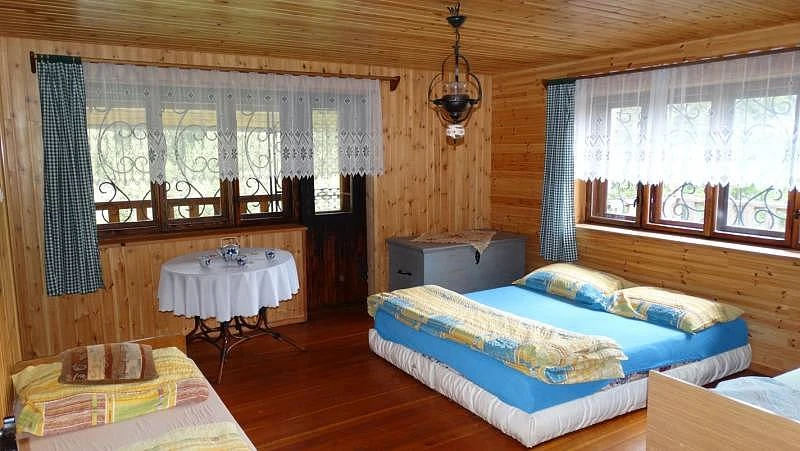1× podkrovní ložnice se sedmi lůžky (dvě dvoulůžka a tři samostatná lůžka)