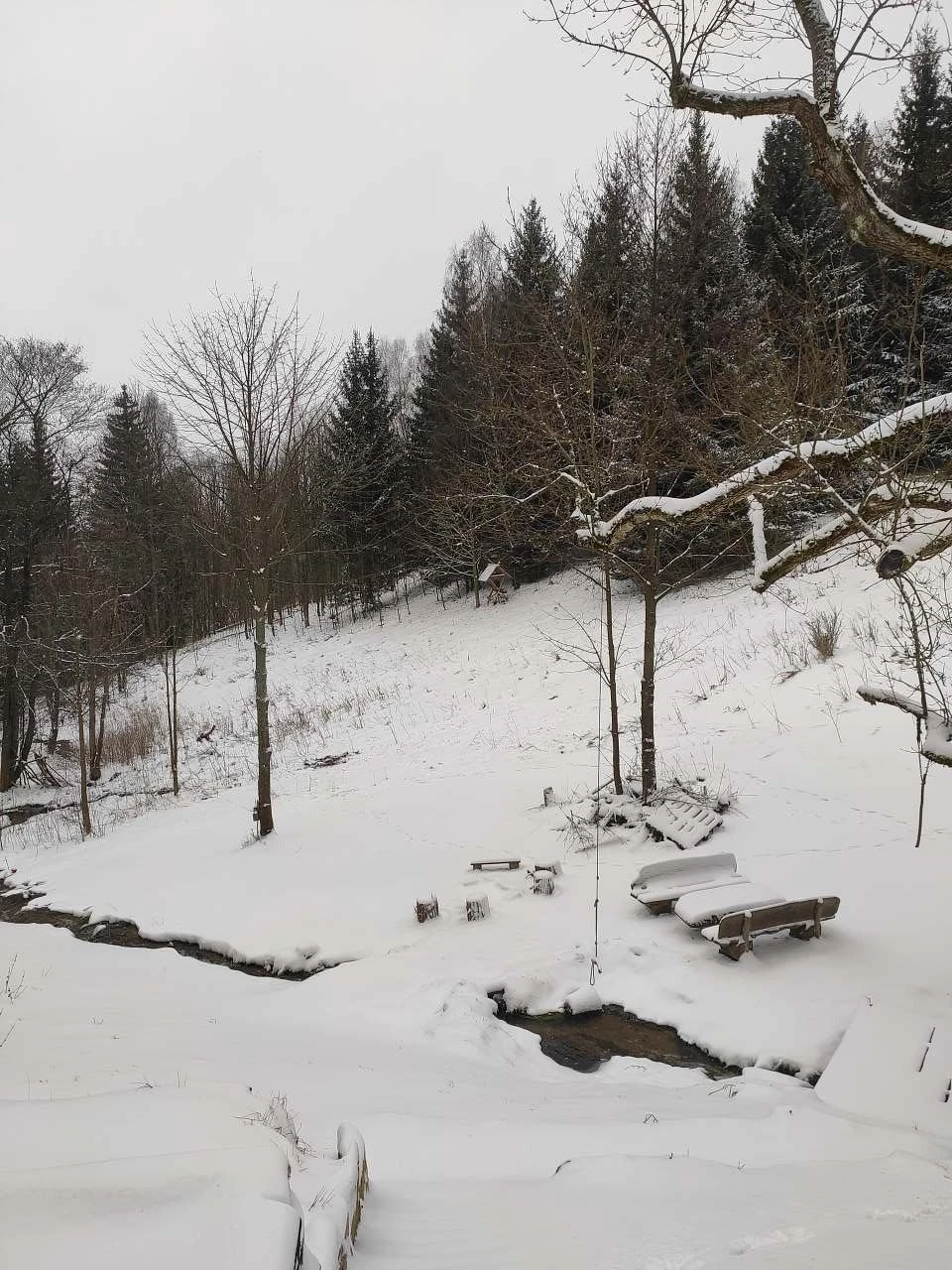 K dispozici je venkovní posezení s grilem, pískoviště, houpačka, ruské kuželky a přírodní houpačka na stromě. V chatě naleznete také deskové hry, rádio a televizi s DVD přehrávačem.