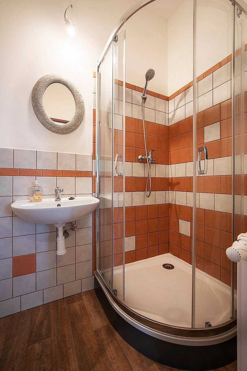 Pokoj má dvě manželské lůžka. Koupelnu se sprchou a wc.