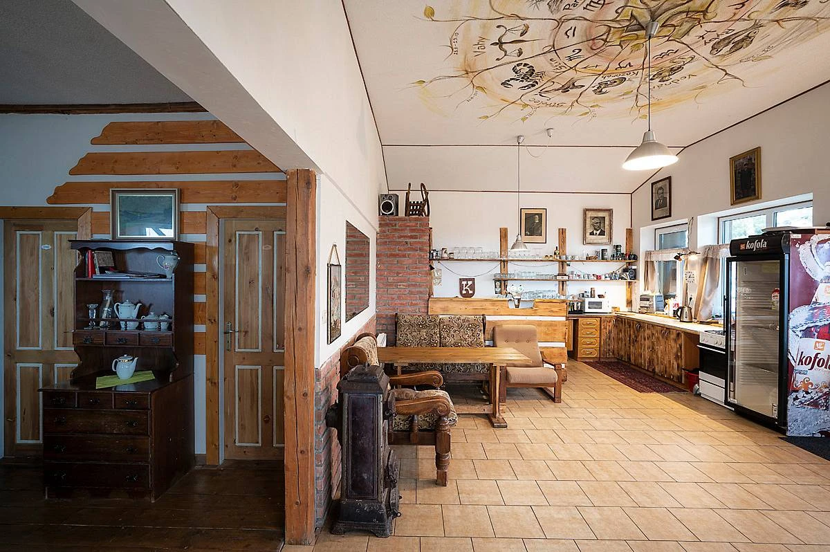 Společenská místnost s WC, barem a výčepem. Tři pokoje s vlastní sprchou a WC.
