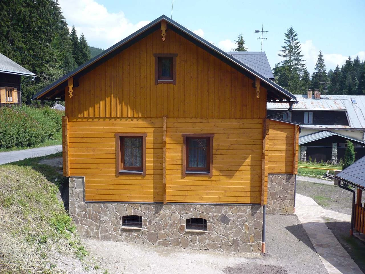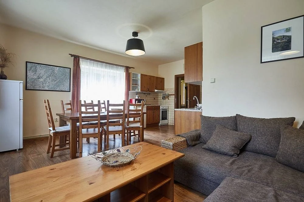 Nově zrekonstruovaná horská Chata Slunce nabízí 3 samostatné ložnice, kompletně vybavenou kuchyň s obývacím koutem a 2 samostatné sociální zařízení.
