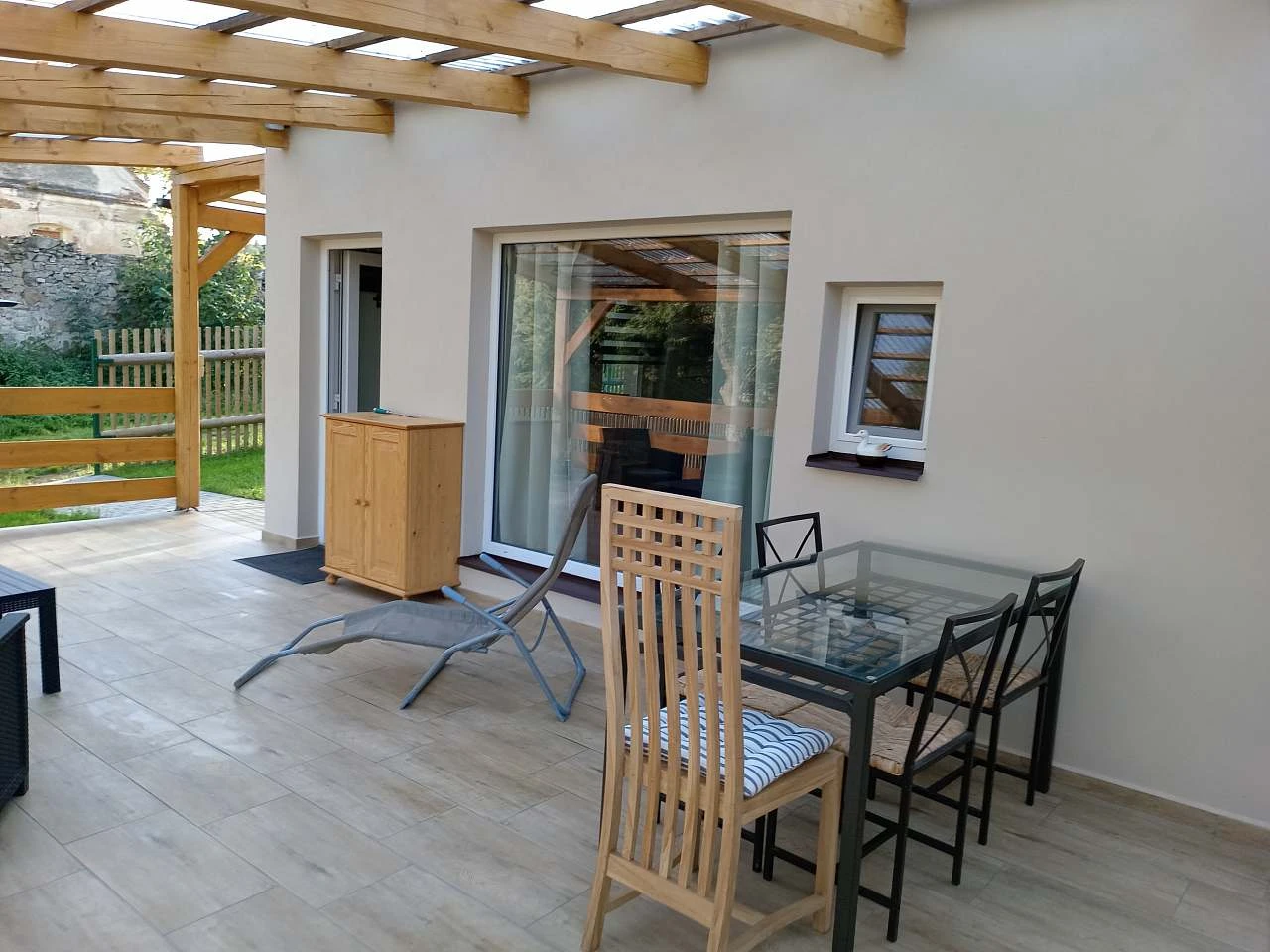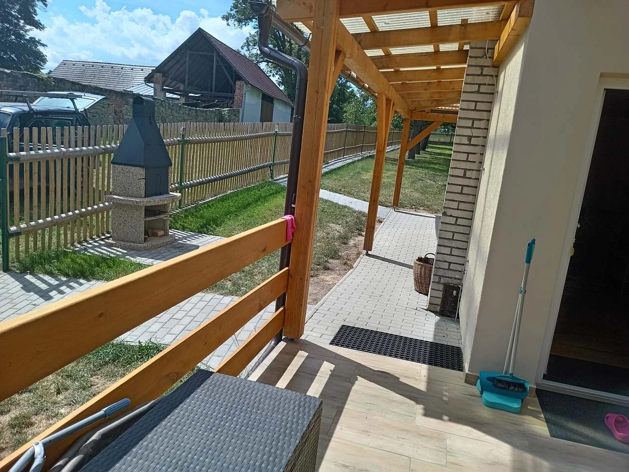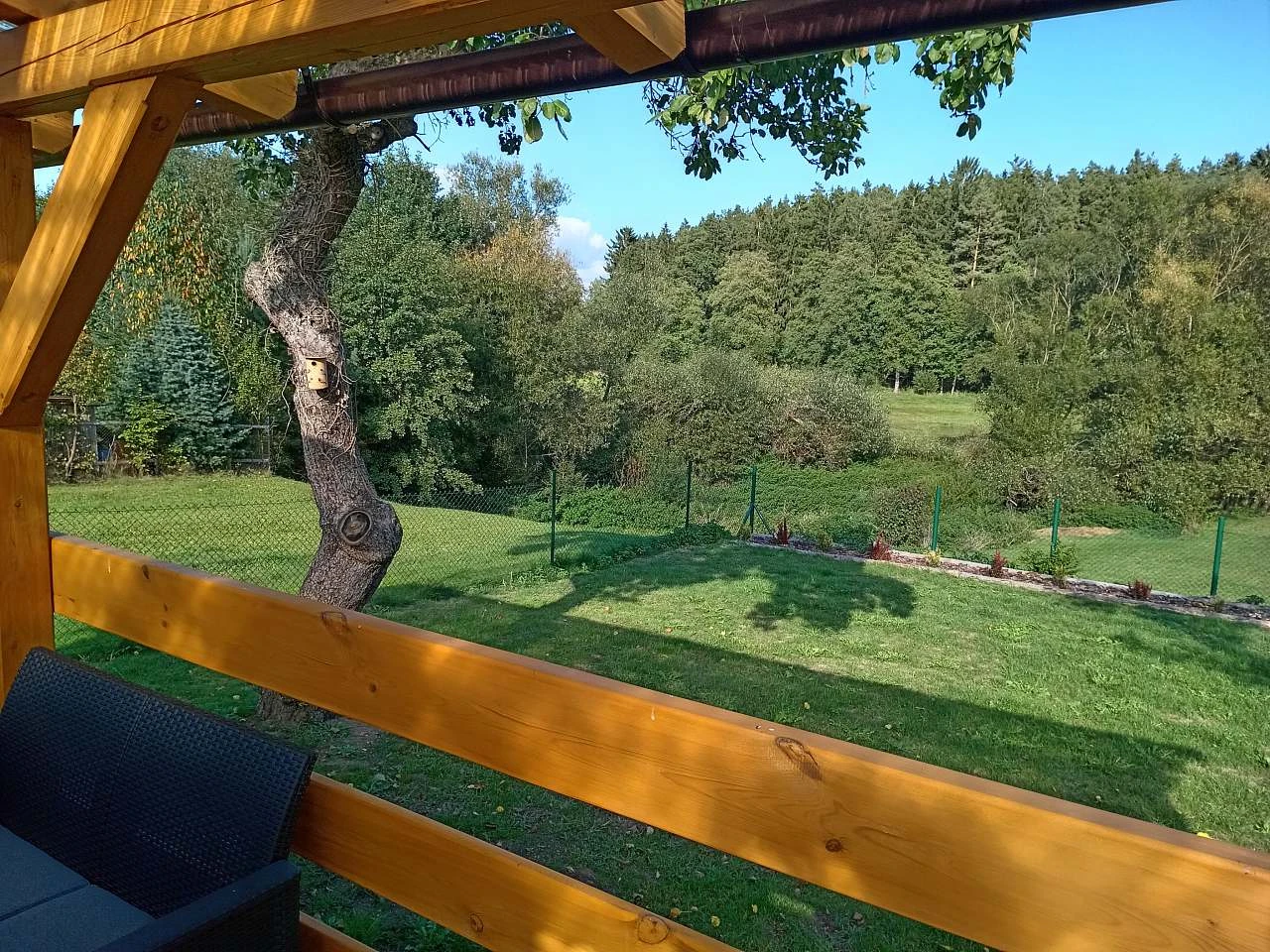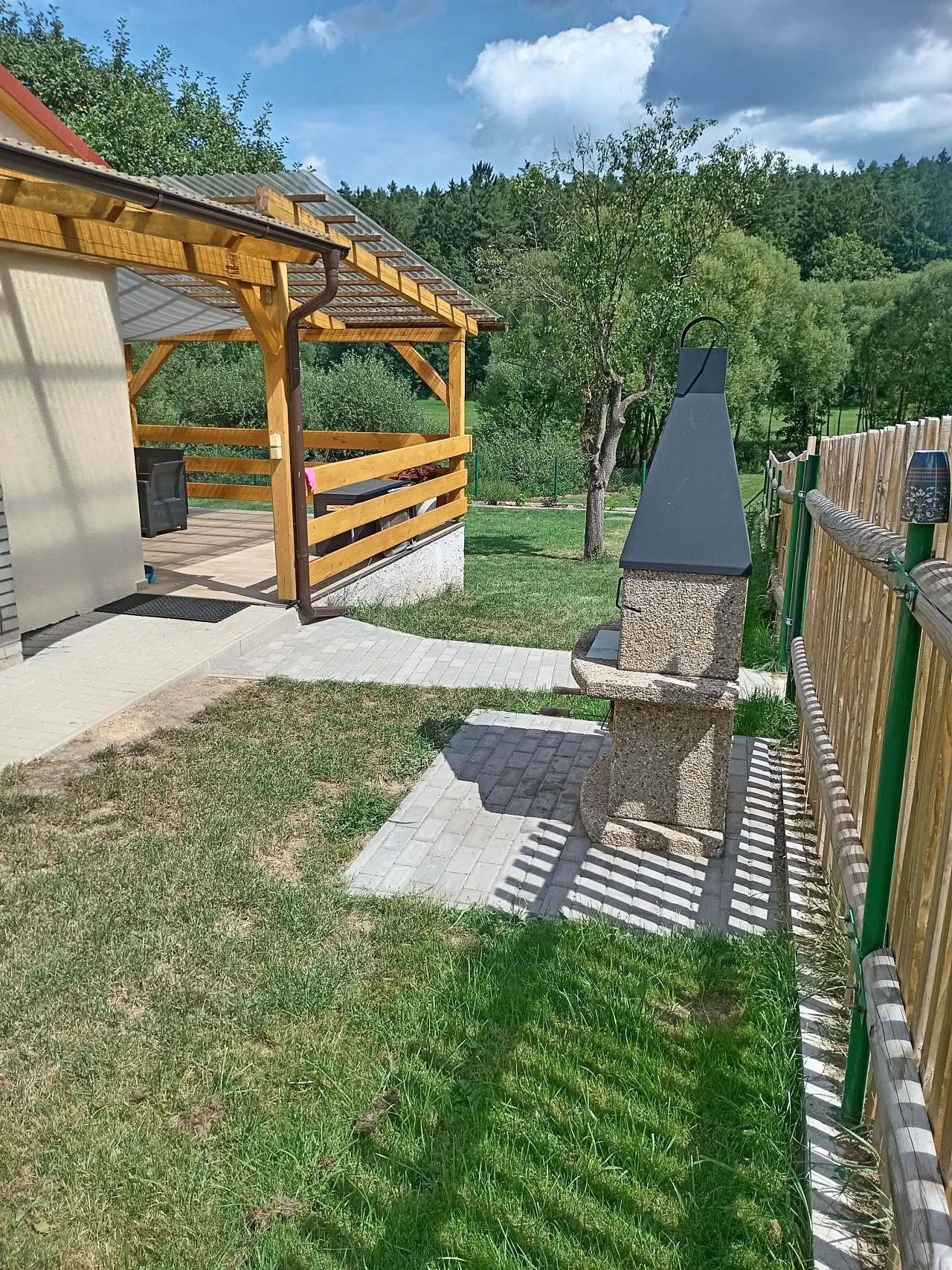 Součástí objektu je zastřešená terasa s posezením a zahrada s ovocnými stromy a grilem. Parkování je zajištěno pod přístřeškem u chaty a k objektu vede dlážděný osvětlený chodníček.