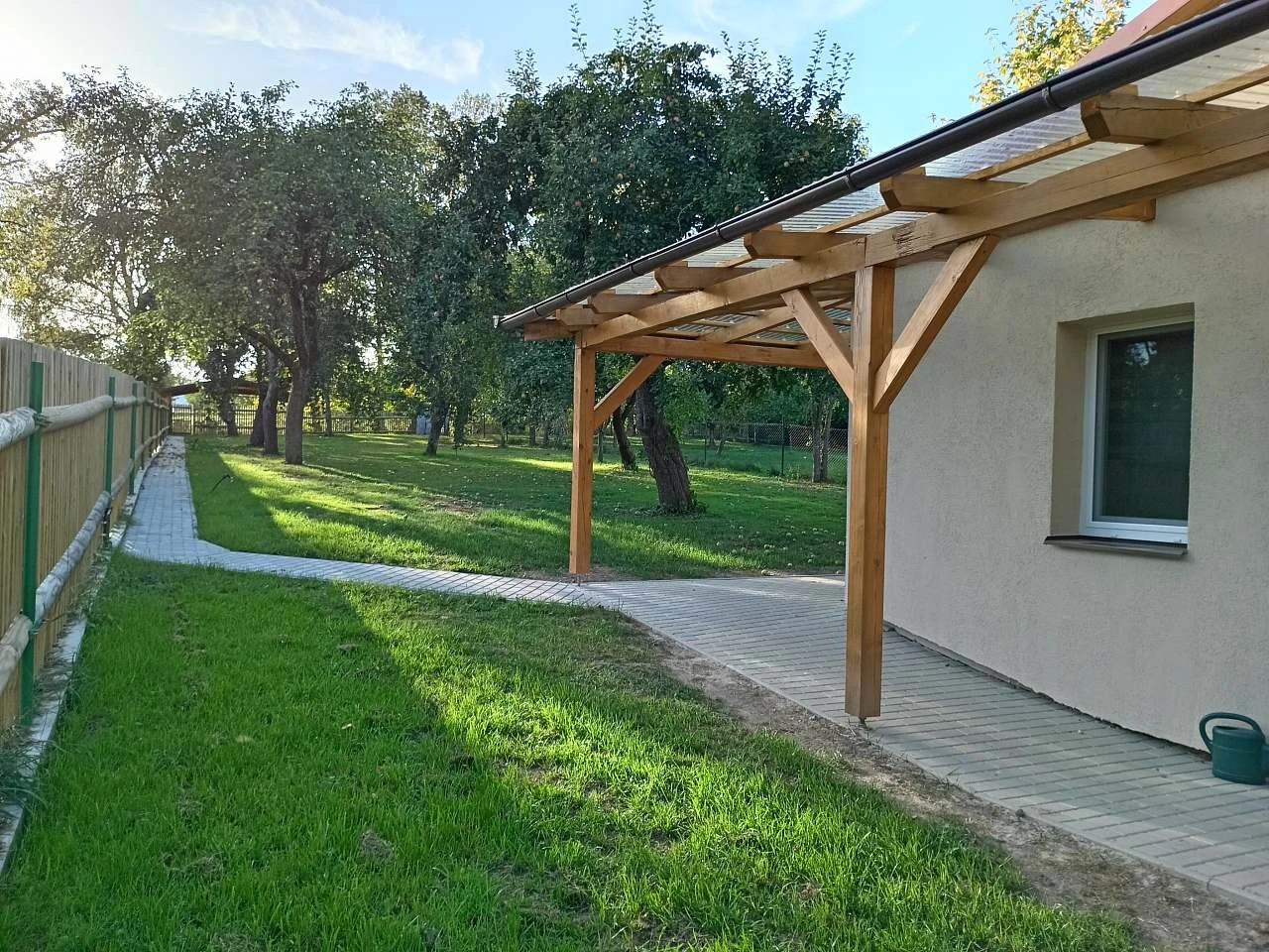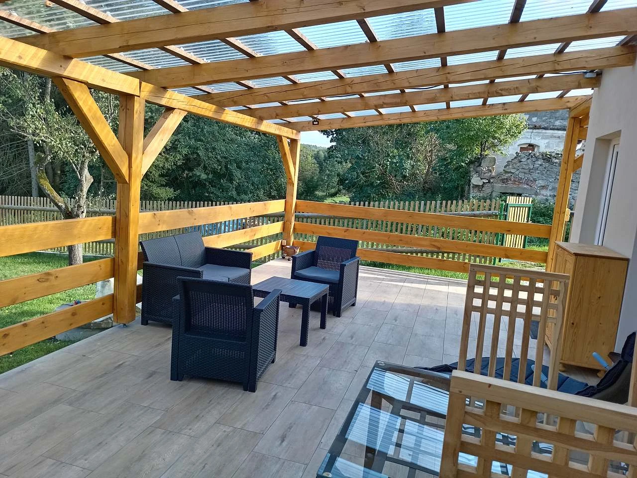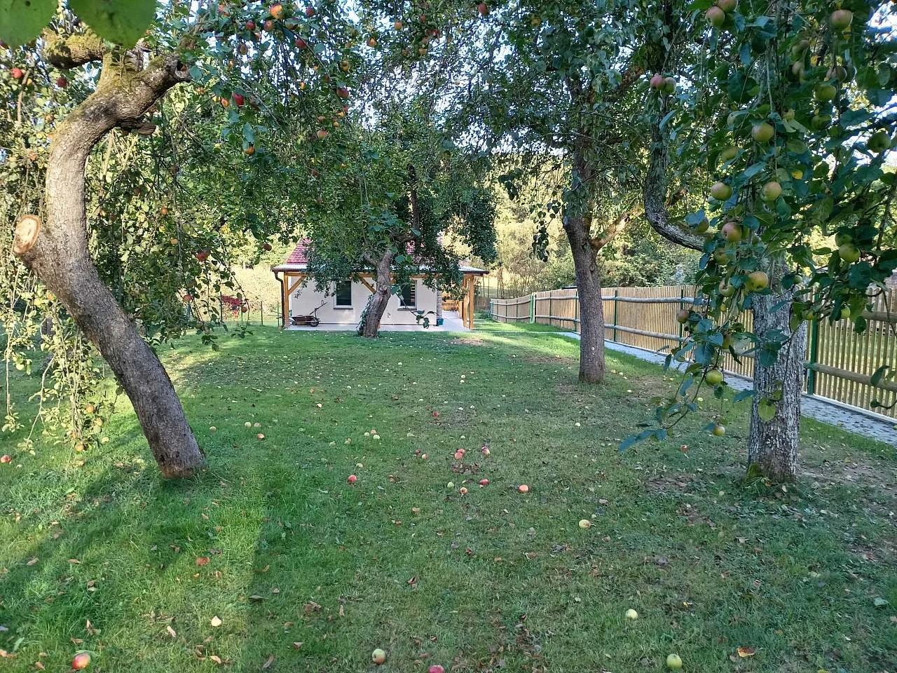 Součástí objektu je zastřešená terasa s posezením a zahrada s ovocnými stromy a grilem. Parkování je zajištěno pod přístřeškem u chaty a k objektu vede dlážděný osvětlený chodníček.