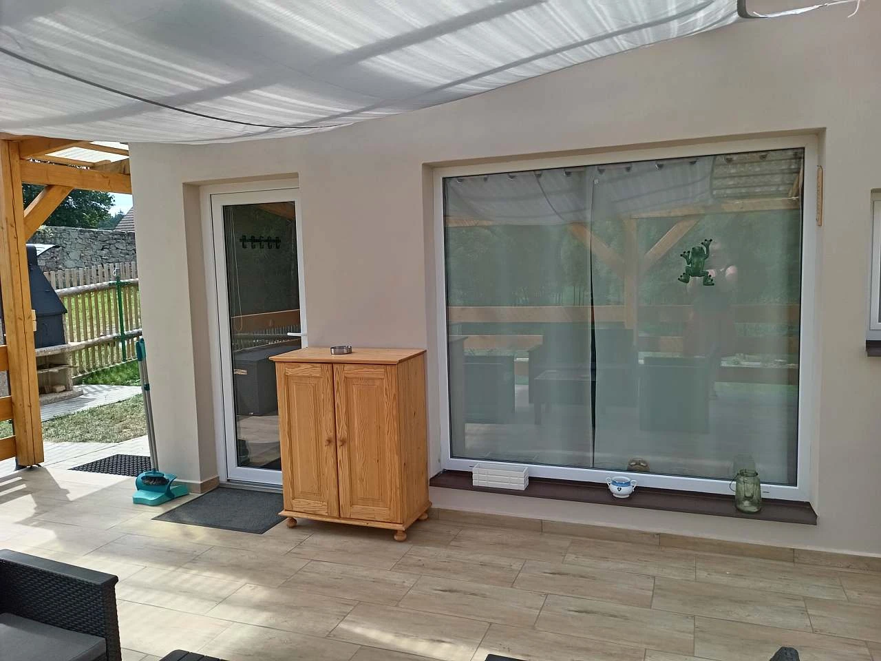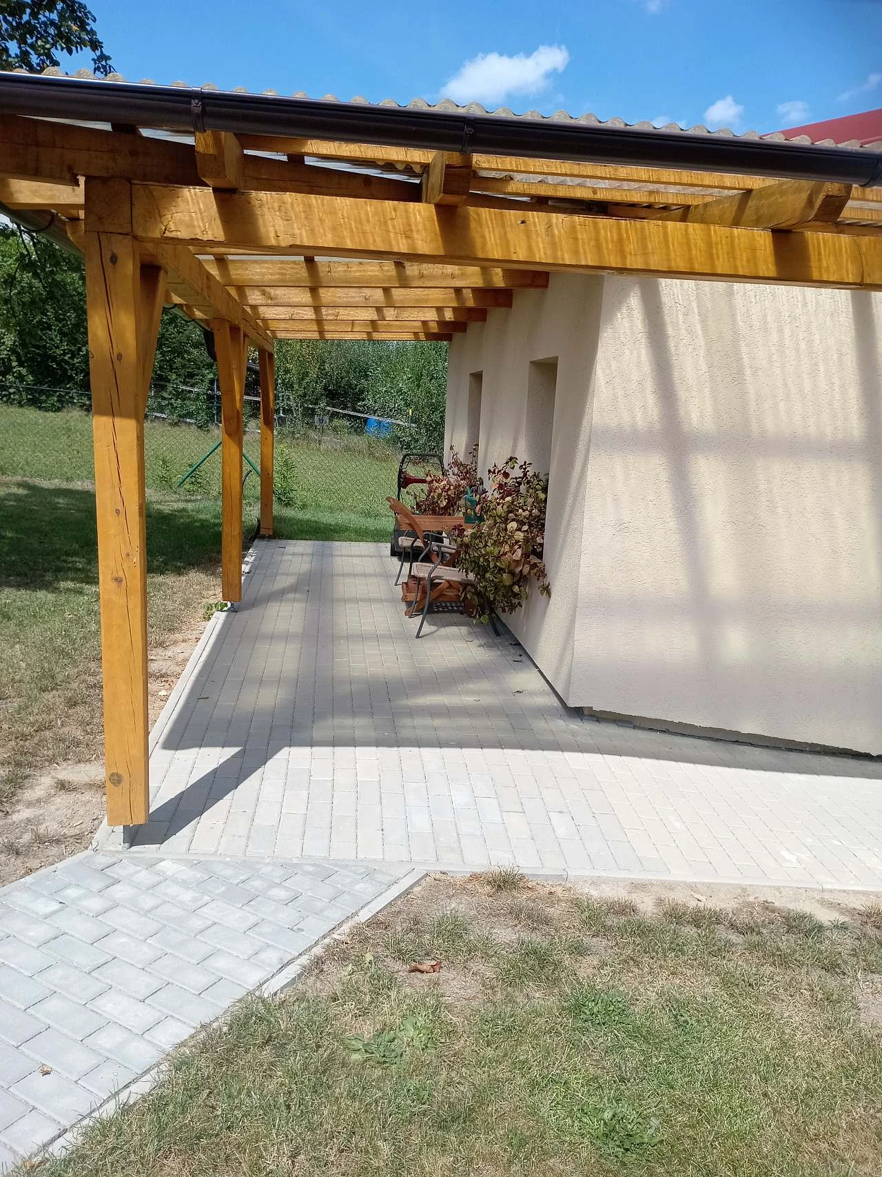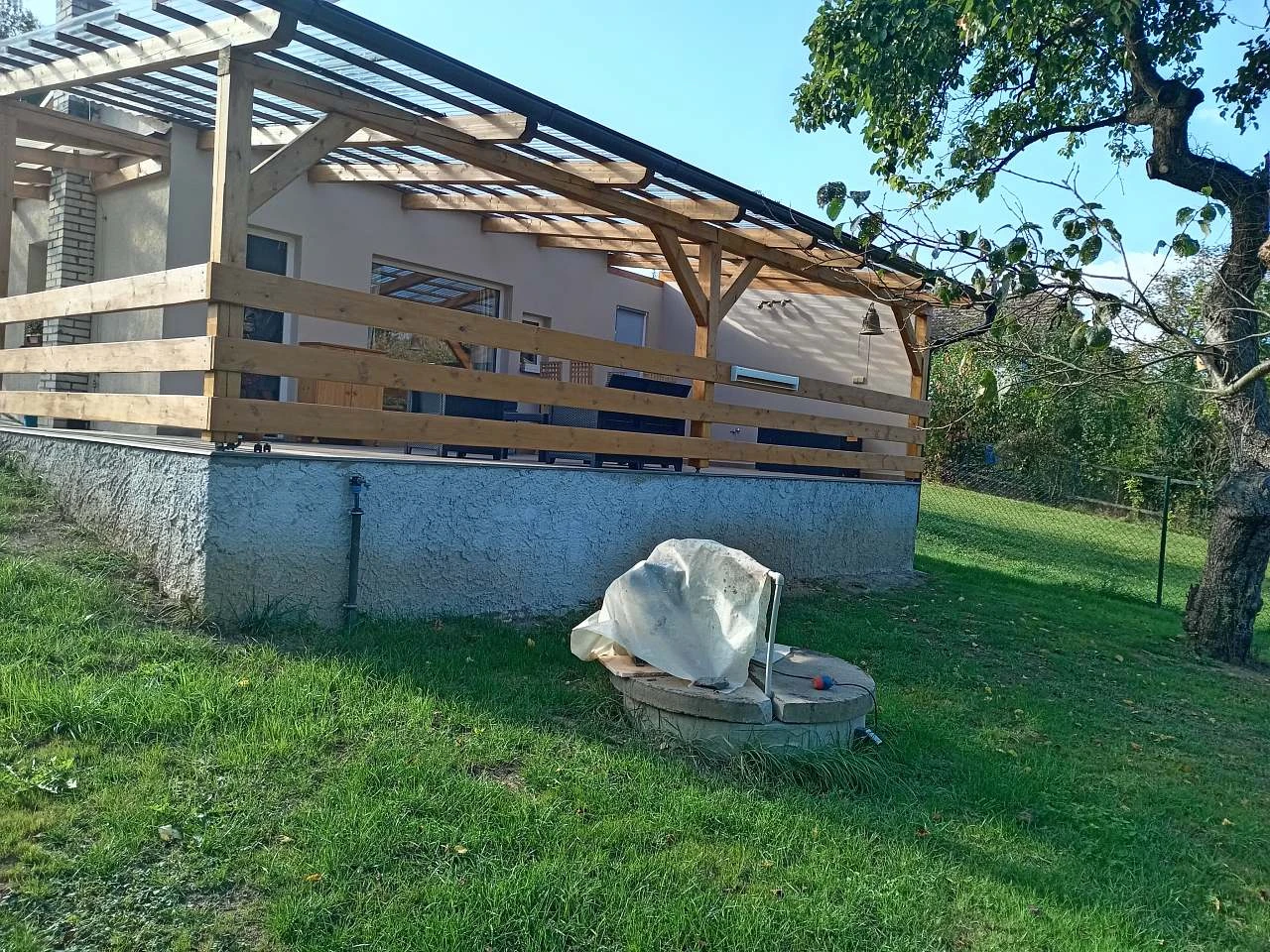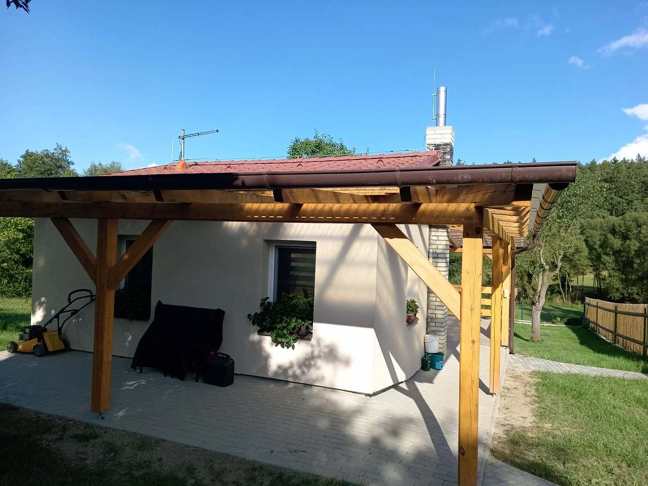 Součástí objektu je zastřešená terasa s posezením a zahrada s ovocnými stromy a grilem. Parkování je zajištěno pod přístřeškem u chaty a k objektu vede dlážděný osvětlený chodníček.