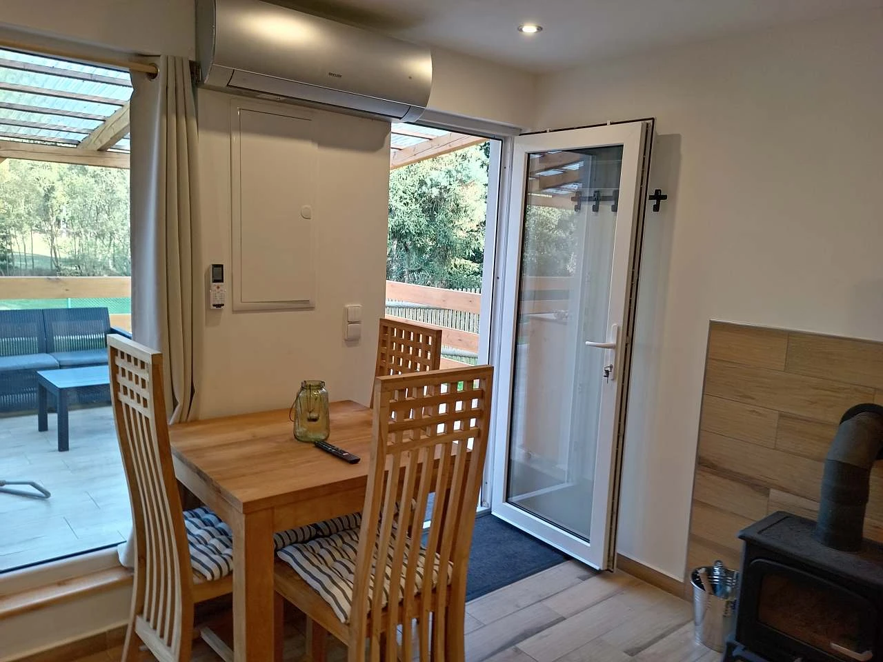 V létě je možné využít klimatizaci, v zimě vytápění krbovými kamny. Chata má prostornou zastřešenou terasu s posezením a zahradu s ovocnými stromy a grilem. Parkování je možné pod přístřeškem přímo u chaty.