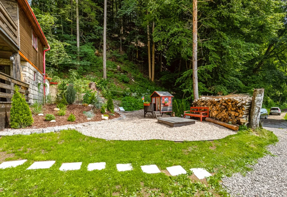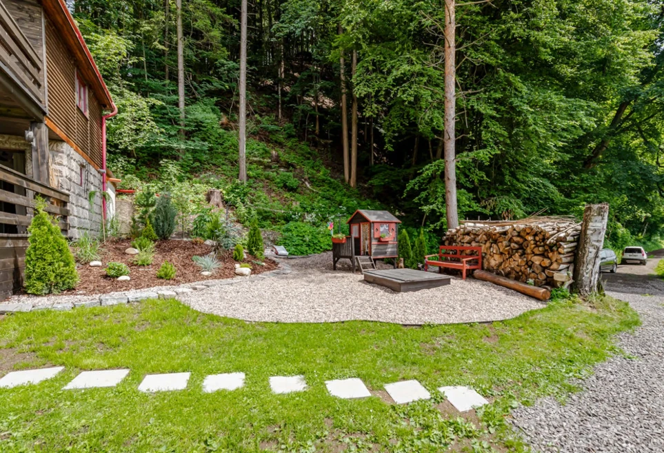 Pro relaxaci je připravena sauna, venkovní posezení na dvou terasách, gril a rozsáhlá zahrada. Děti se zabaví na hřišti s pískovištěm a domečkem.