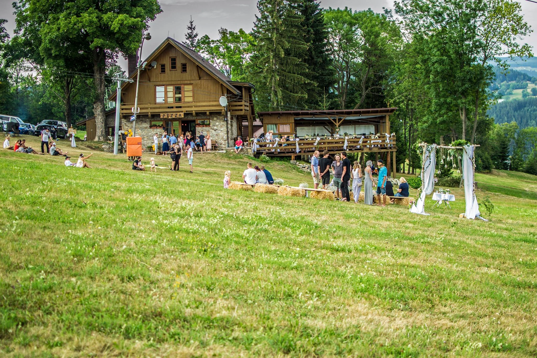 - Venkovní posezení v létě s grilem