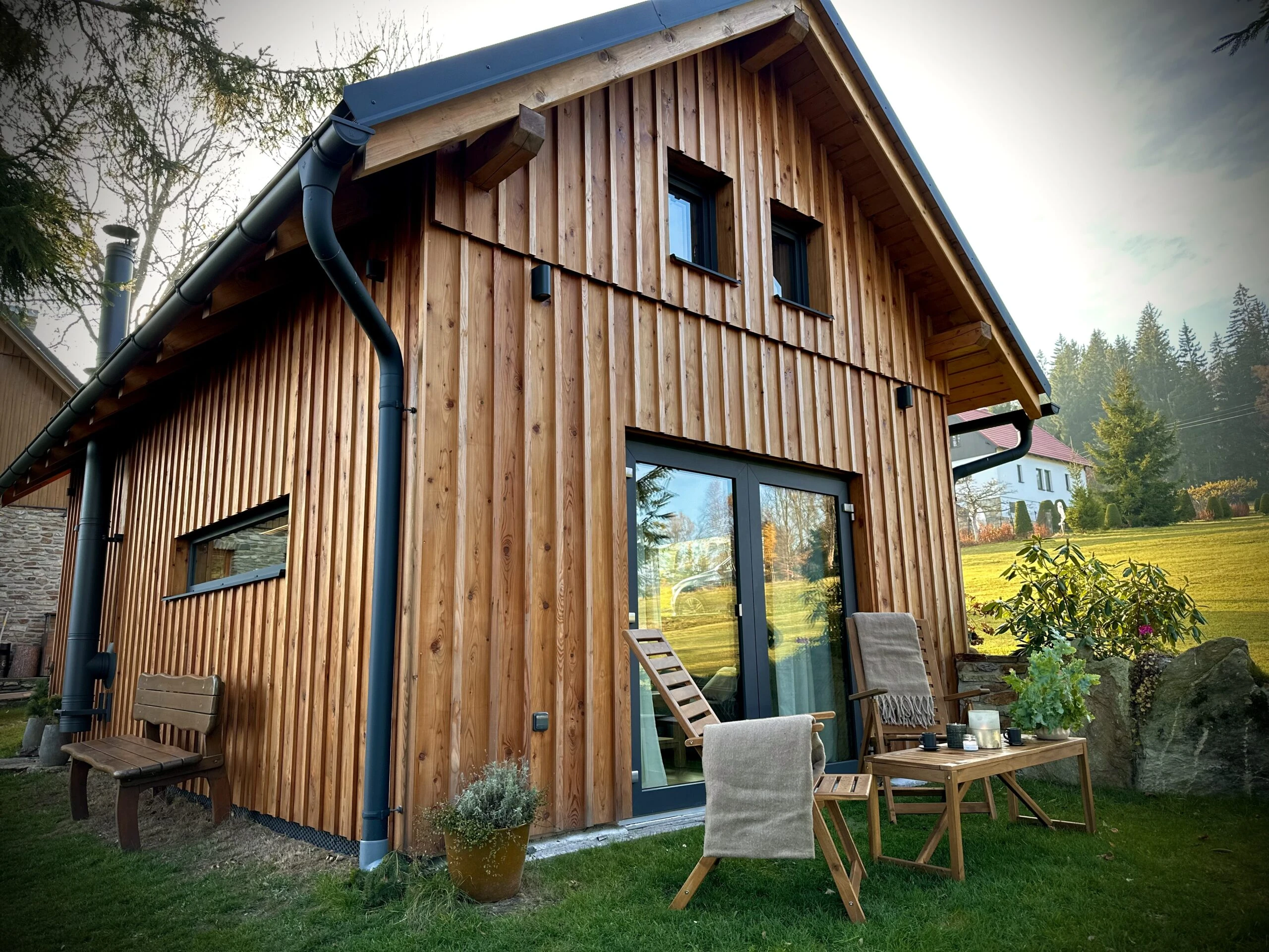 Areál nabízí i další vybavení, jako je vířivka, bar a restaurace, a v létě venkovní posezení s grilem. Psi jsou vítáni podle velikosti a charakteru. Celková ubytovací kapacita areálu je 27 lůžek.