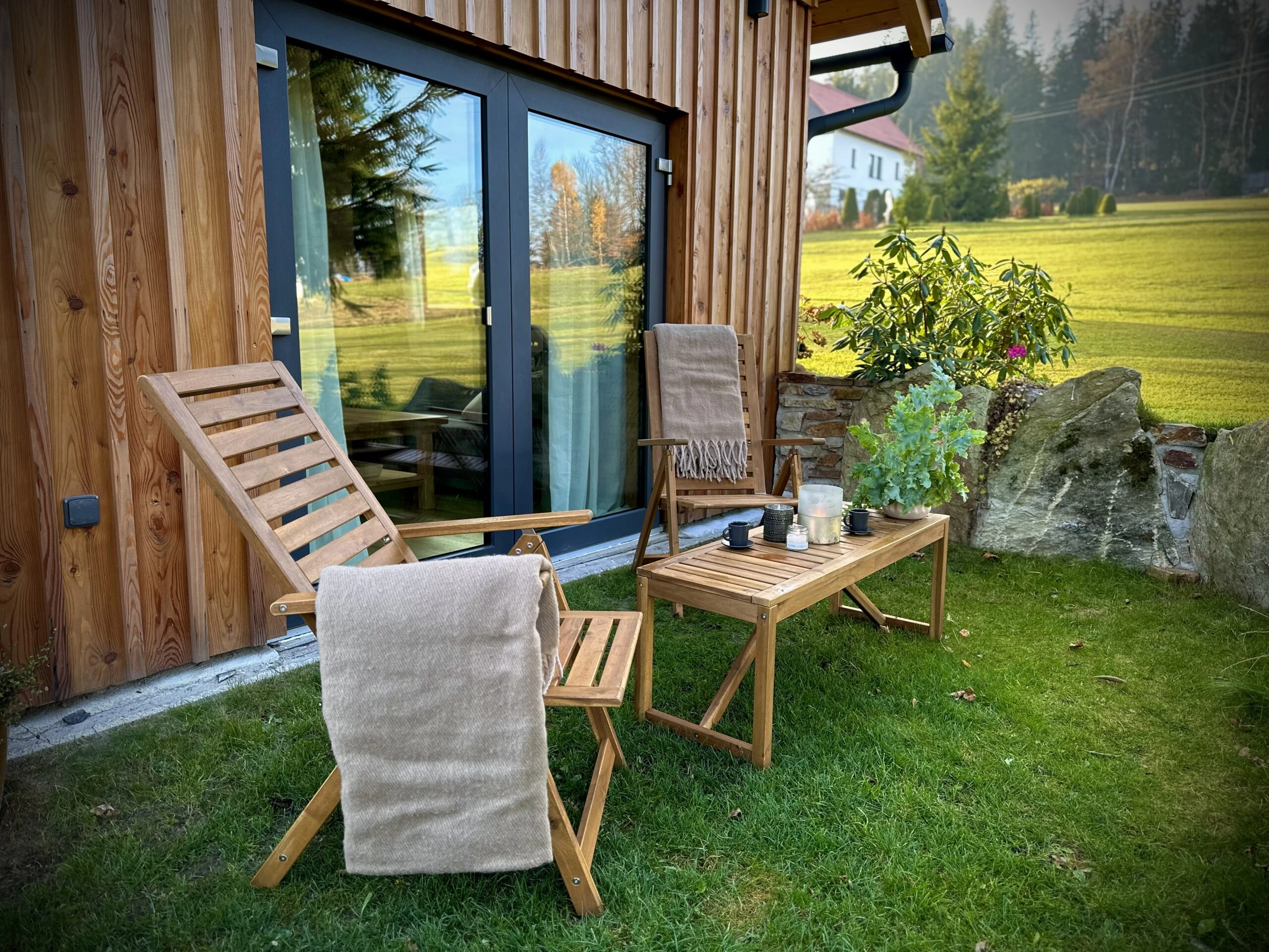 - Venkovní posezení s grilem (v létě)