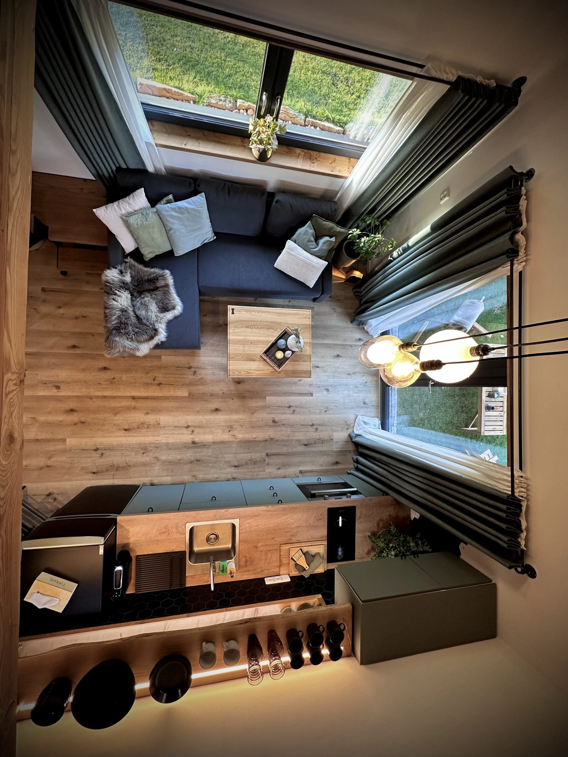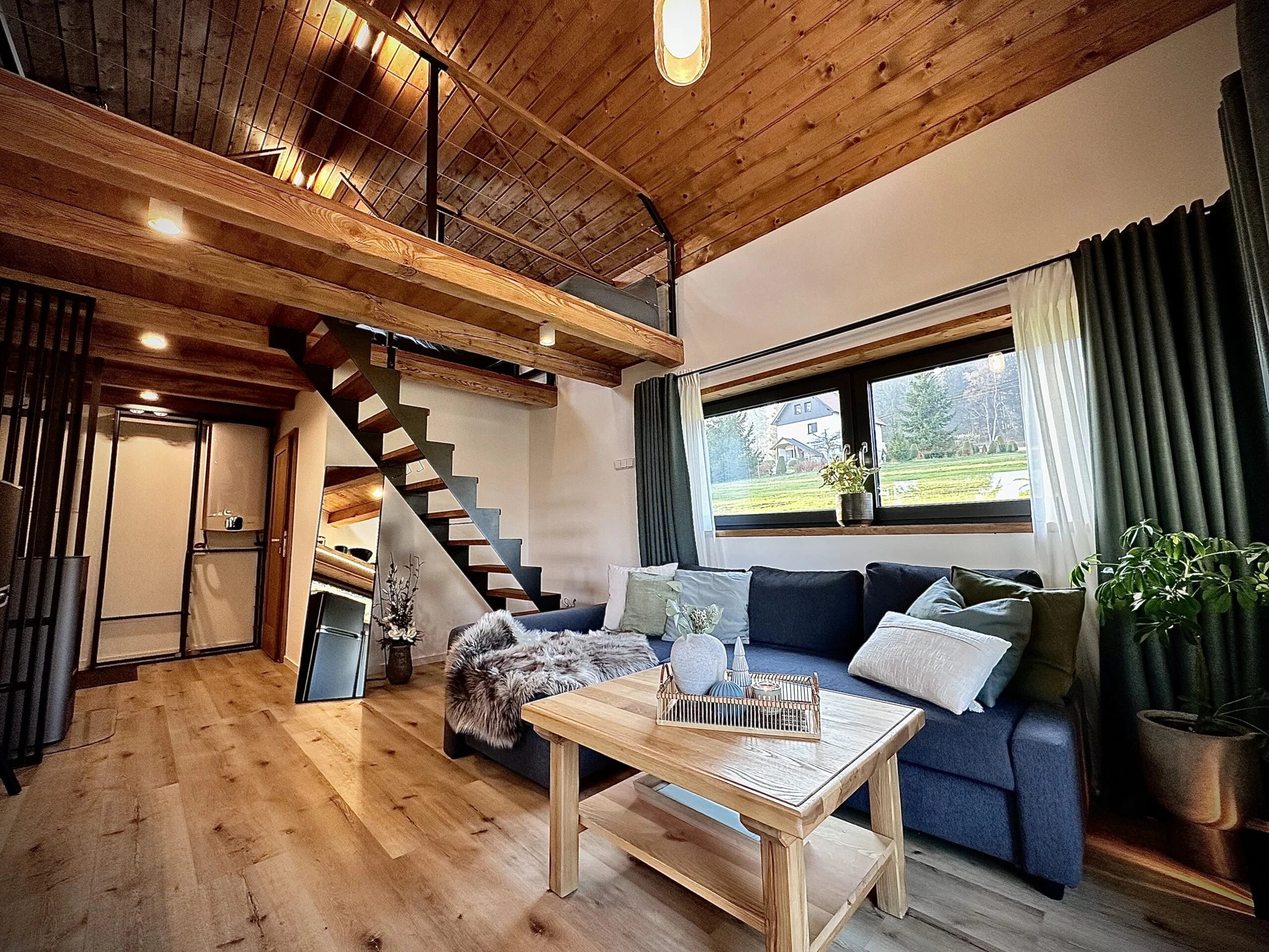 Malá chatka je komfortně vybavena a má kapacitu pro 4-5 osob. V přízemí se nachází plně vybavená kuchyň, rozkládací gauč a koupelna s WC. V atriu je ložnice se dvěma manželskými postelemi. Kuchyň je vybavena lednicí, myčkou, troubou, varnou deskou a dalšími spotřebiči. Malá lyžárna je také k dispozici.