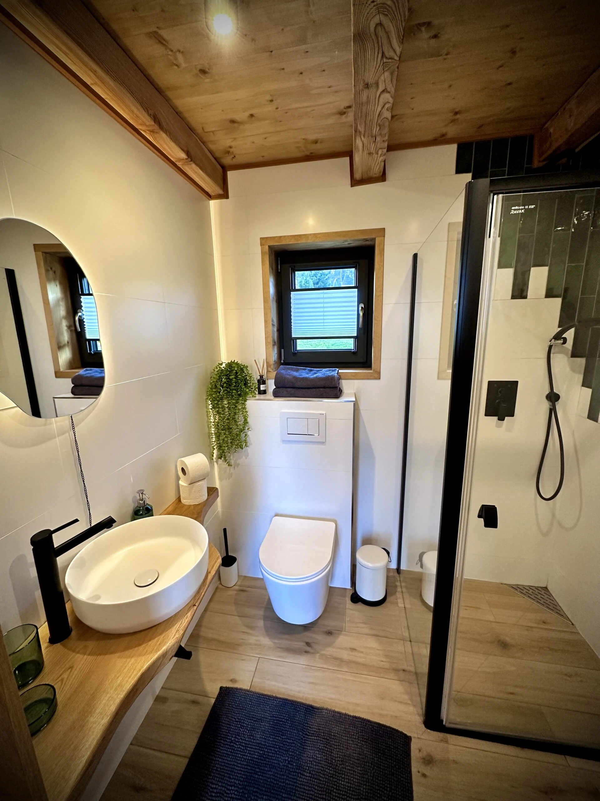 - Sprchový kout a WC