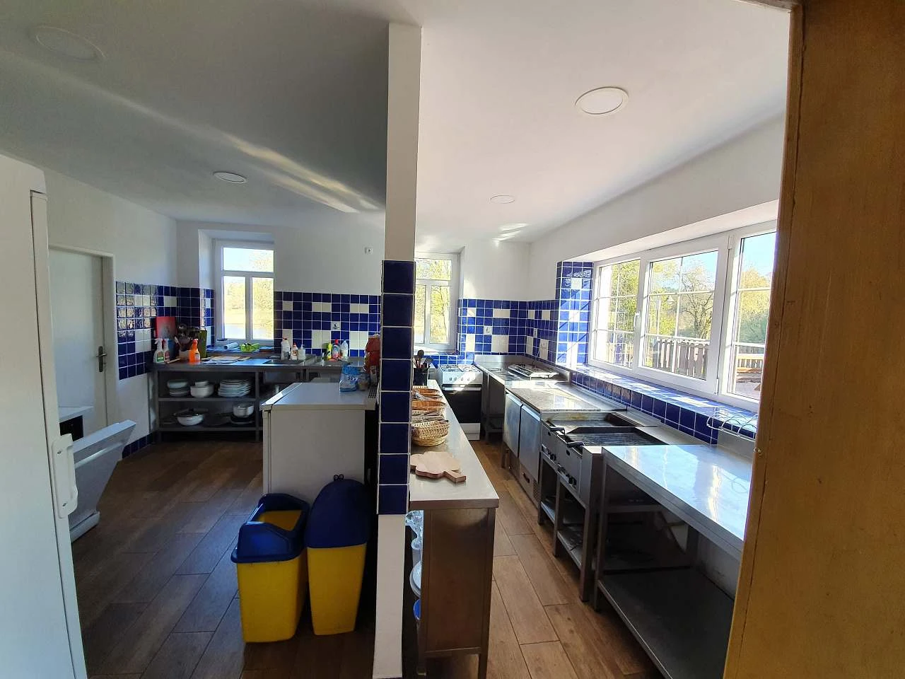 Vlastní - kuchyň s plynovým sporákem a elektrickou troubou, plynový gril, lávový gril, indukční dvojplotýnka, mikrovlnka, salamandr, 3x lednička, saladeta, mrazák, myčka, v chatě je PITNÁ VODA.. Možnost dokoupení veškerých potravin 500m od objektu v Hoješíně. Letní hospůdka pod Drnem 50 m s možností stravování a country večerů.