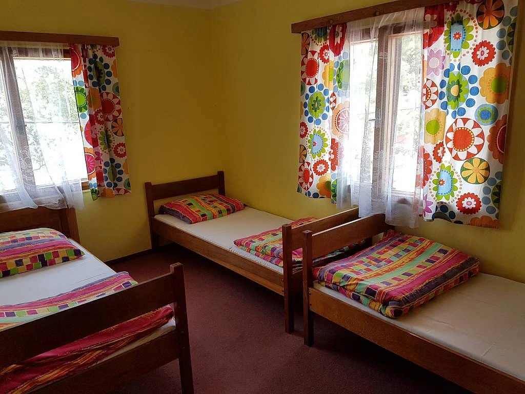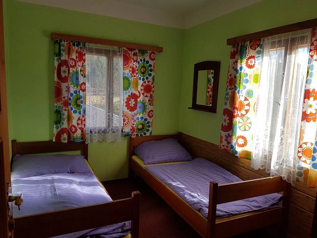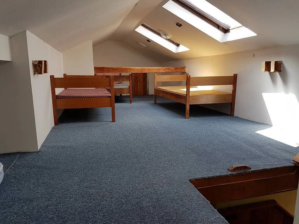 Ubytování v 8 dvoulůžkových pokojích a 2 třílůžkových. V podkroví EVENTUELNÍ možnost přespání dalších cca 7 osob na matracích s vlastními spacáky.