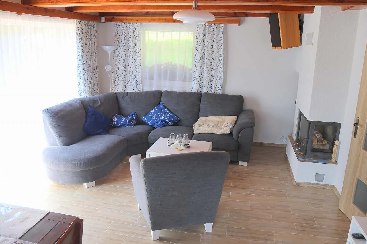 Ložnice, dvoulůžkové postele, jednolůžka, dětská postýlka, balkón s posezením, společenská místnost, krbová kamna, TV, Wi-Fi, stereo, plně vybavená kuchyň, lednice, elektrická trouba, sklokeramická varná deska, myčka, mikrovlnná trouba, rychlovarná konvice, kávovar Dolce Gusto, nádobí, koupelna, sprchový kout, 2x WC, pračka, klimatizace, infrasauna, vířivka (za poplatek), terasa, zahradní nábytek, venkovní gril, ohniště, dětské hřiště, trampolína, prolézačky, pískoviště, parkování u objektu, ústřední topení s tepelným čerpadlem.