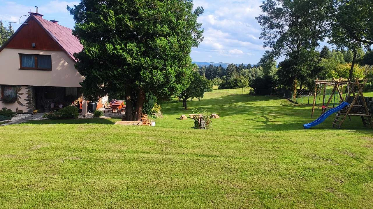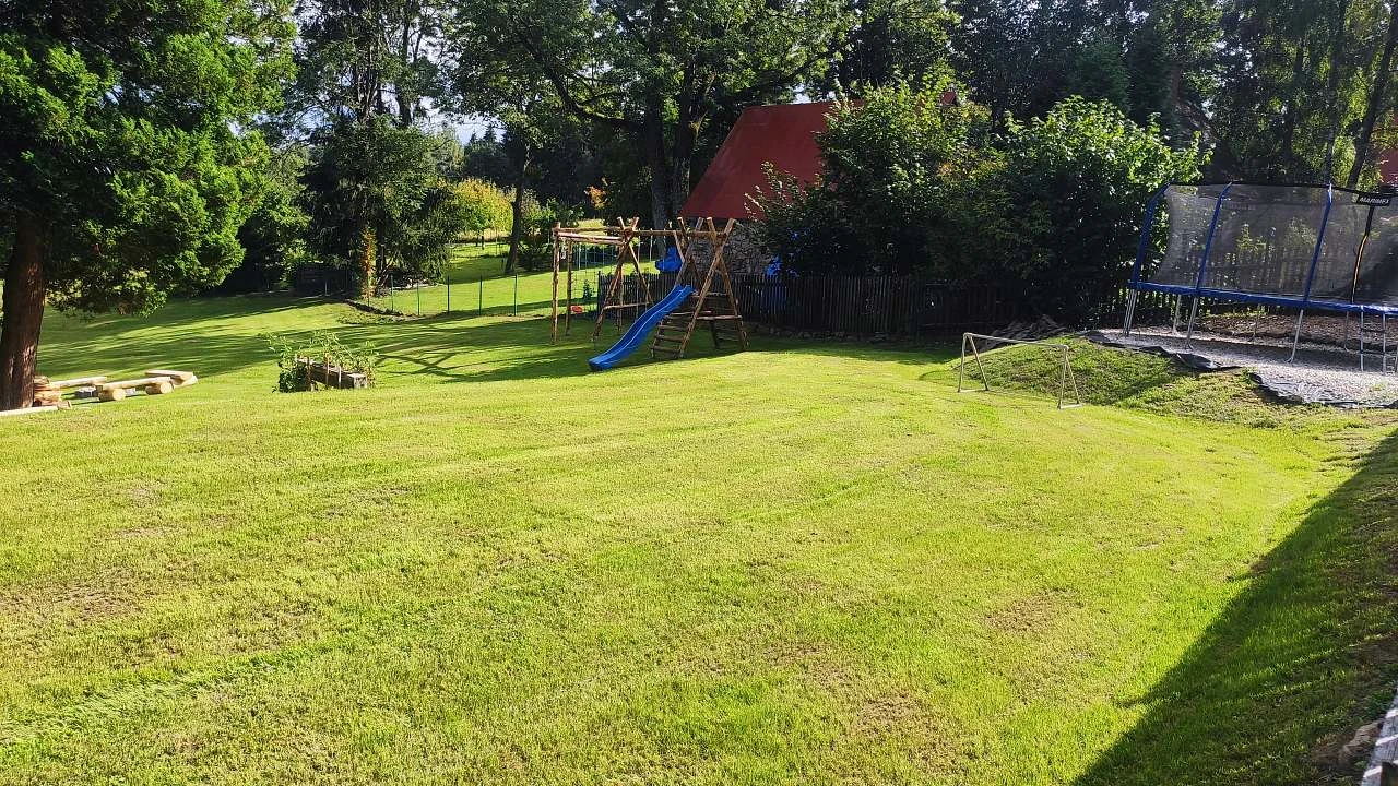 K dispozici je prostorná zahrada s dětským hřištěm, trampolínou, prolézačkami a pískovištěm. Parkování je možné přímo u chaty pro 3 vozidla s možností rozšíření na přilehlé zahradě.