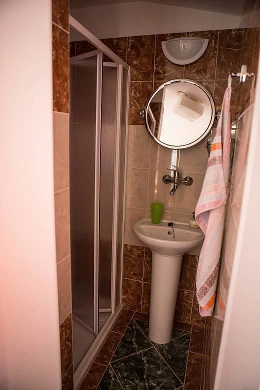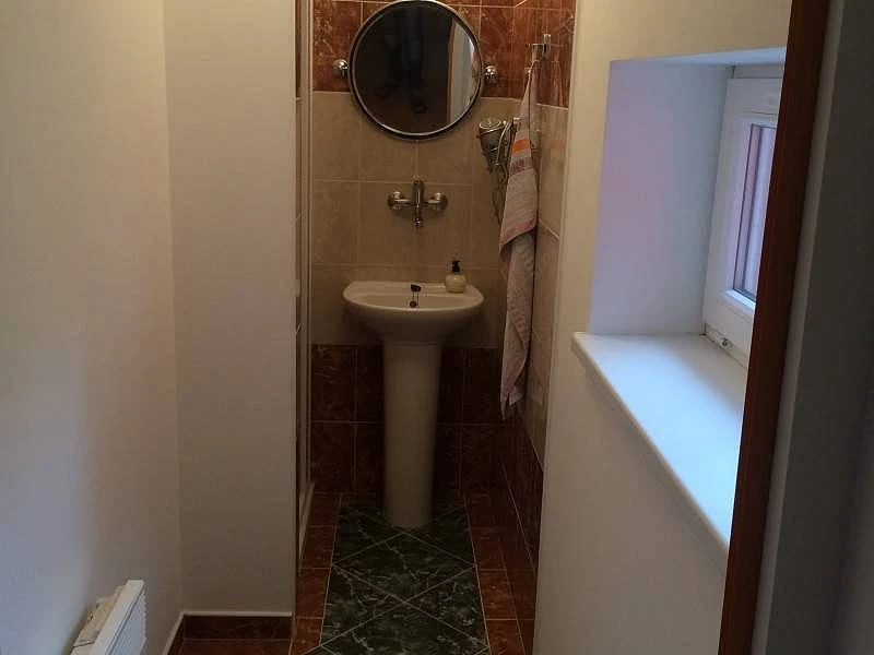 V objektu je koupelna se sprchovým koutem, umyvadlem a fénem. Samostatné WC.