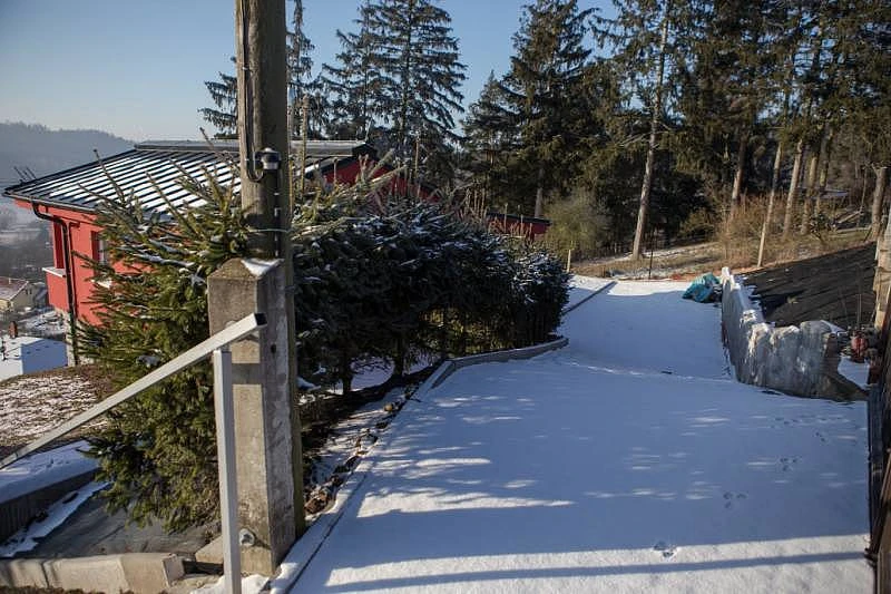 Oplocený pozemek, parkování pro 2 vozidla. K objektu vede zpevněná polní cesta cca 500 m od hlavní komunikace.
