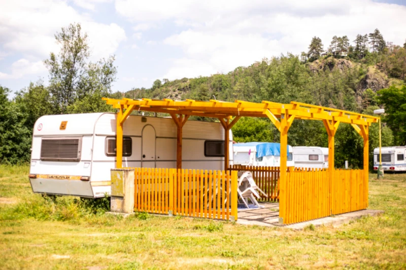 Pro stany, karavany a obytné vozy jsou v areálu k dispozici velké zatravněné plochy. Kemp nabízí omezený počet přípojek na 230V, které jsou vybaveny odpočtovými hodinami. Hosté platí pouze za skutečně spotřebovanou elektřinu. Při nástupu je nutné uhradit vratnou kauci ve výši 100 Kč za stan, altán nebo přístřešek a 100 Kč za elektrickou přípojku za noc. Ubytování v této kategorii je možné od 12:00 do 20:00 hodin. Kemp také nabízí možnost celoročního stání karavanů.