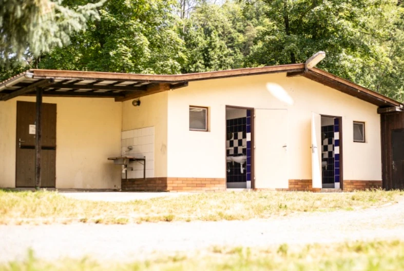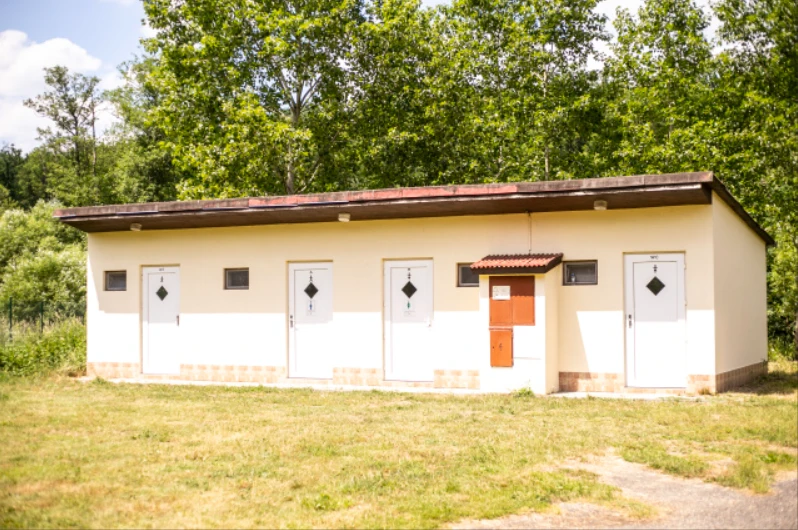 Sociální zařízení je společné a vybavené automaty na teplou vodu, které fungují na žetony zakoupené na recepci nebo v restauraci. Hlavní sociální zařízení zahrnuje 5 dámských a 5 pánských sprch, převlékací kabinky, přebalovací pult a mycí kout na nádobí. Druhé, menší sociální zařízení je určeno pouze pro vybrané chaty a je vybaveno 2 dámskými a 2 pánskými sprchami. Pitná voda je k dispozici pouze do uzavíratelných nádob u kohoutku vedle restaurace. Mytí nádobí, čištění zubů nebo koupání je povoleno pouze v určených prostorách sociálního zařízení.