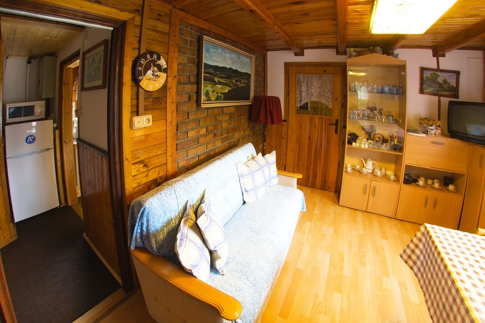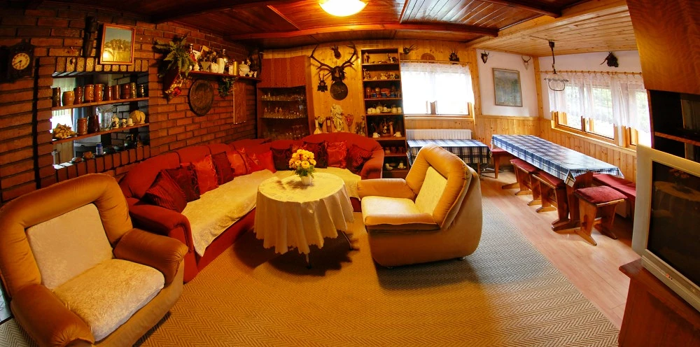 - Obývací místnost: gauč, televize, jídelní posezení
