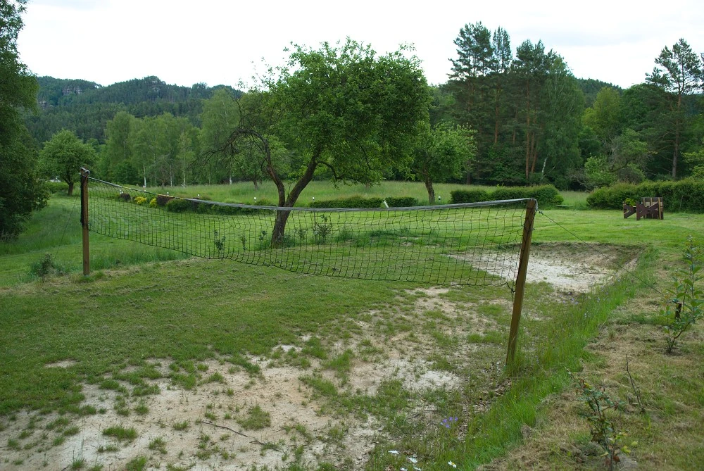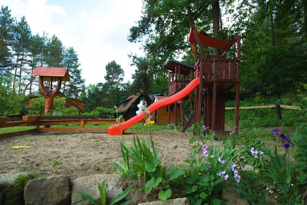 Na společném pozemku je k dispozici ohniště, volejbalové hřiště, prostor na fotbal, stolní tenis a dětský koutek s trampolínou, pískovištěm, prolézačkami, skluzavkou a hračkami. Parkování je možné přímo u chat.
