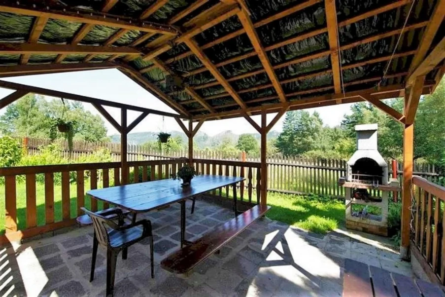 - Venkovní vybavení: pergola s posezením, zahradní krb