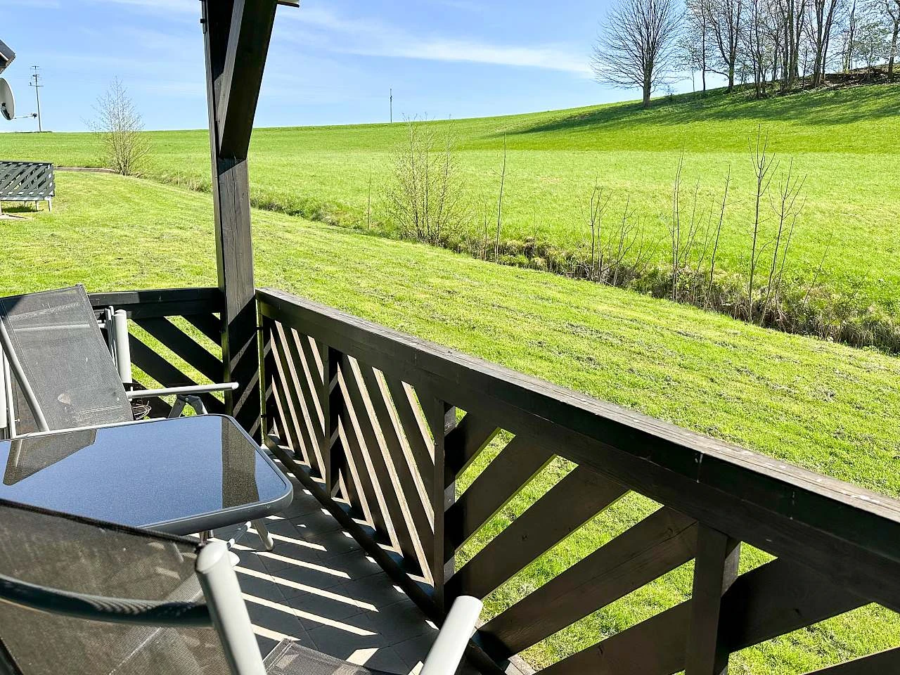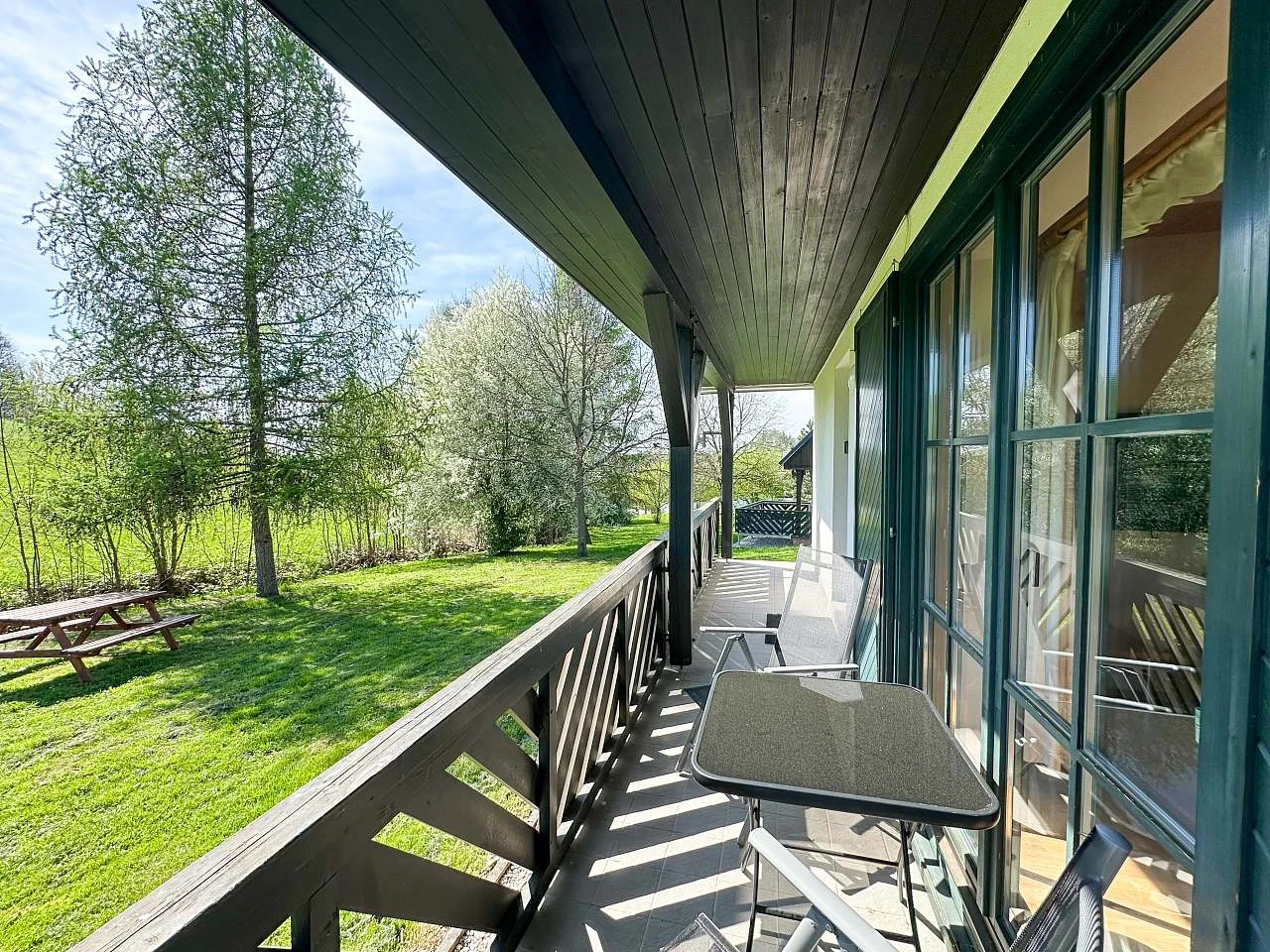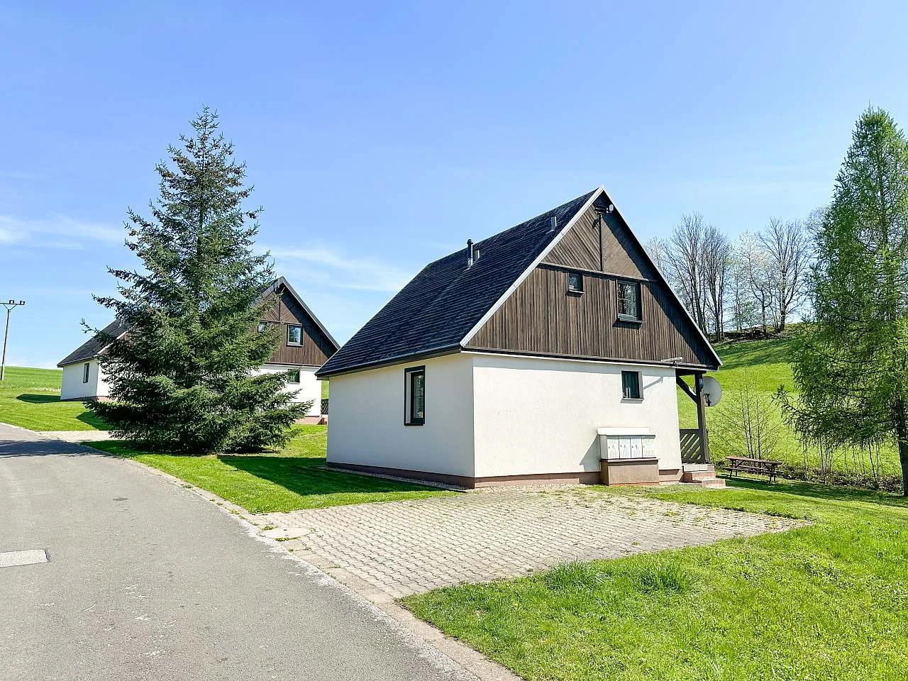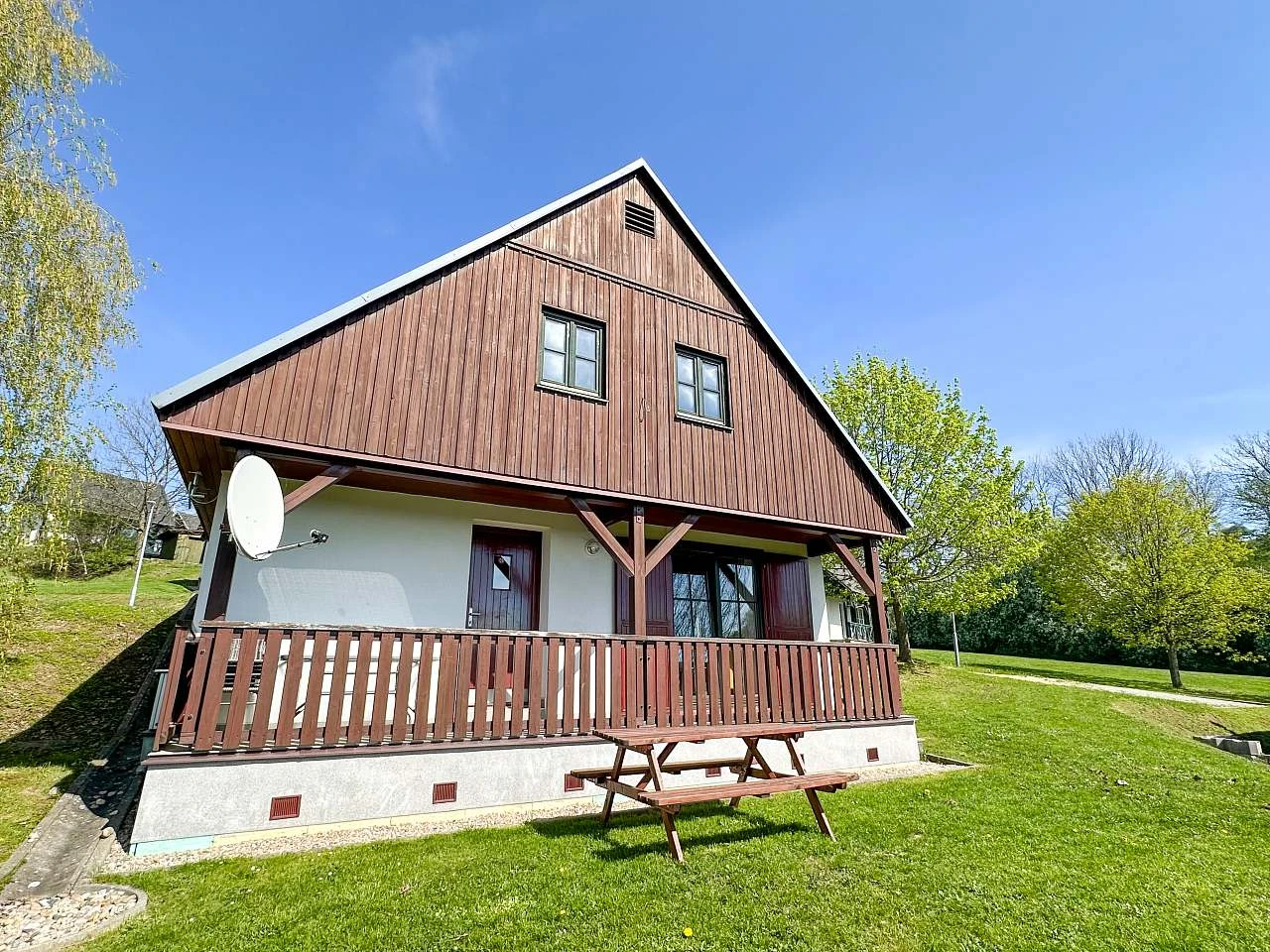 Obě chaty mají terasu přístupnou z obývacího pokoje a hlavního vchodu, ideální pro relaxaci a vychutnání si venkovního prostředí. Pro parkování je k dispozici zdarma parkování pro 2 automobily a obě chaty jsou dostupné autem přímo k objektu.