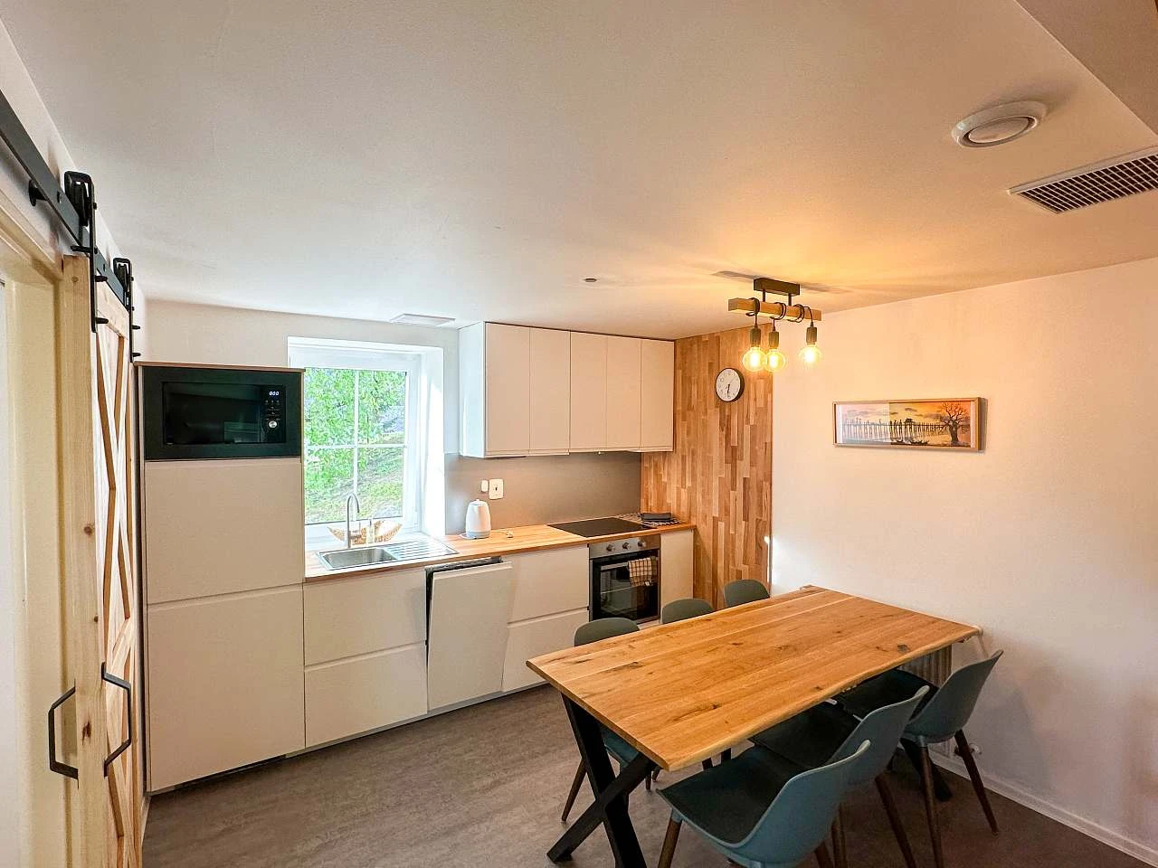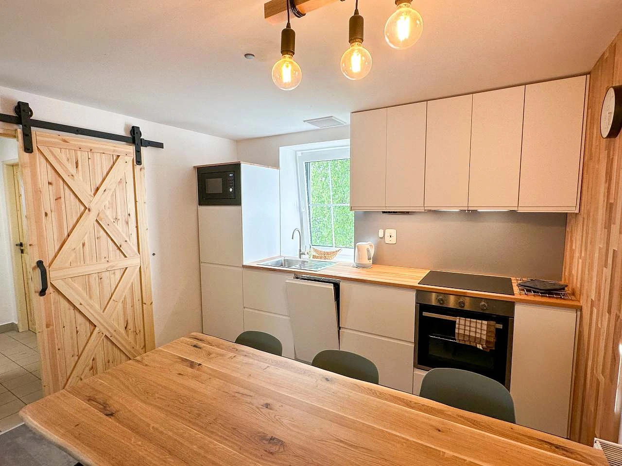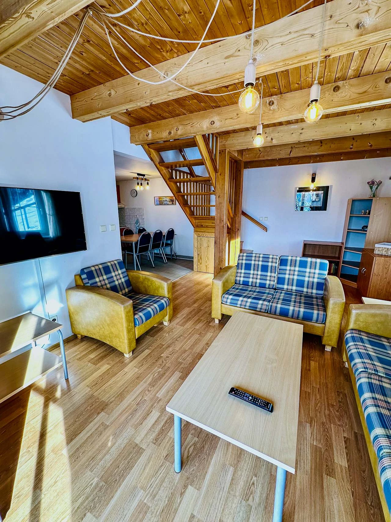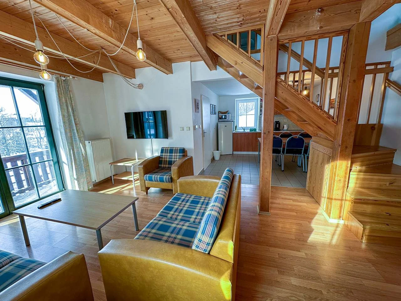Obě chaty nabízejí prostorný obývací pokoj a kuchyni, která je plně vybavena pro přípravu vlastních jídel. Chata Třicítka má v přízemí koupelnu s toaletou, zatímco v Chata Čtyřicítka najdete v přízemí toaletu a v prvním patře koupelnu s vanou, toaletou a pračkou.