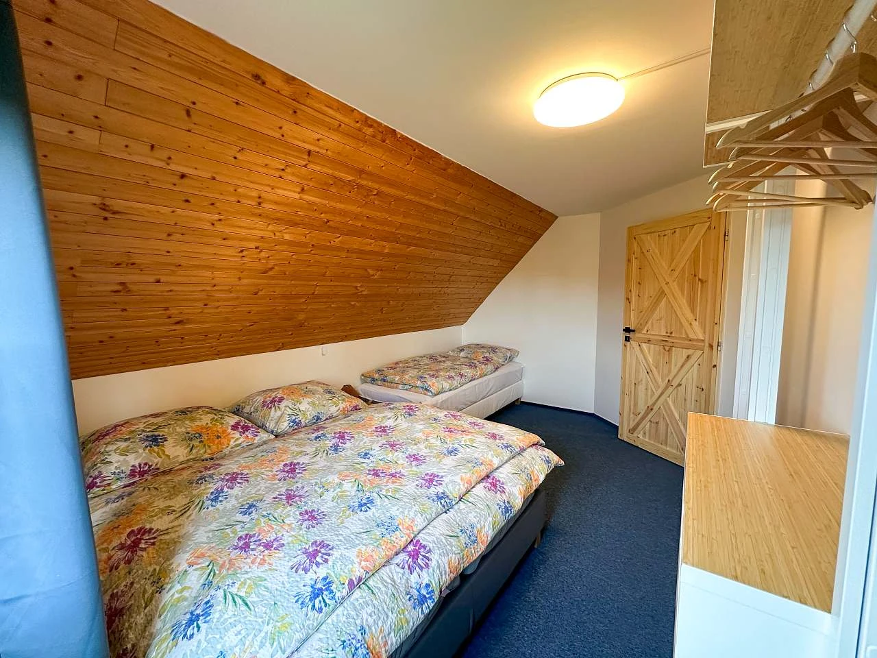 Stejně tak Chata Čtyřicítka má dvě ložnice s manželskou postelí a jednu s palandou.