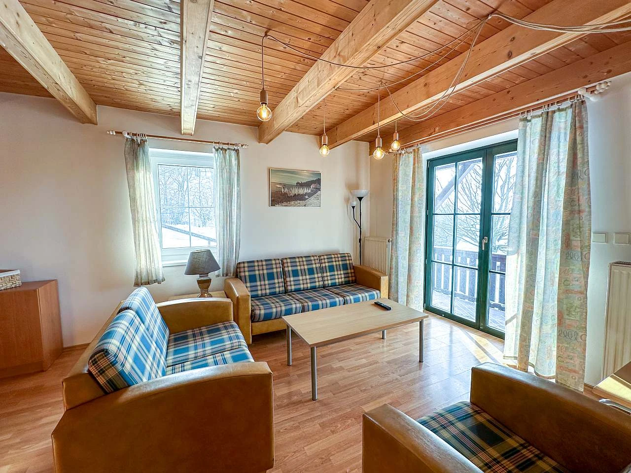 Chata Třicítka a Chata Čtyřicítka se nacházejí na Šťastném kopci a poskytují komfortní ubytování pro 6 osob ve 3 neprůchozích ložnicích.