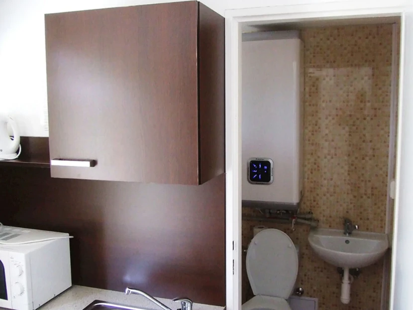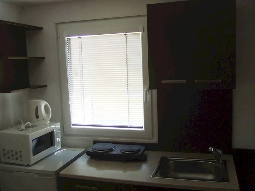 - Kuchyňský kout (základní kuchyňské nádobí, elektrický vařič, mikrovlnná trouba, rychlovarná konvice, lednička)