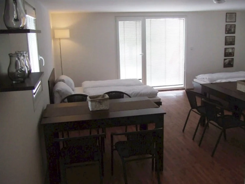- Ložnice 2: 3× jednolůžková postel, 1× přistýlka (gauč)