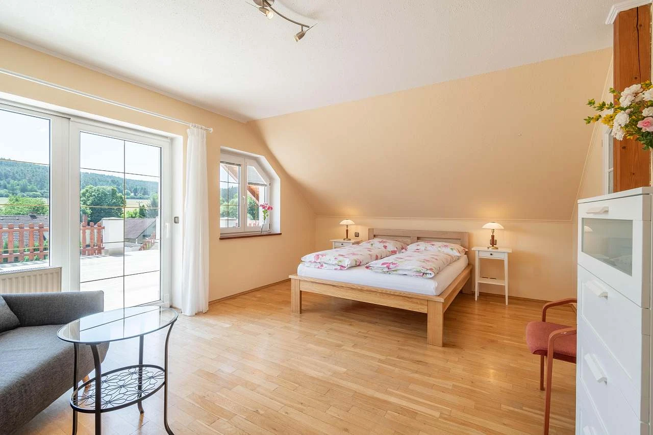 Pokoj č. 7 - 2 lůžka (manželská postel 160cm) + 1 přistýlka + možná další 1 přistýlka = matrace.