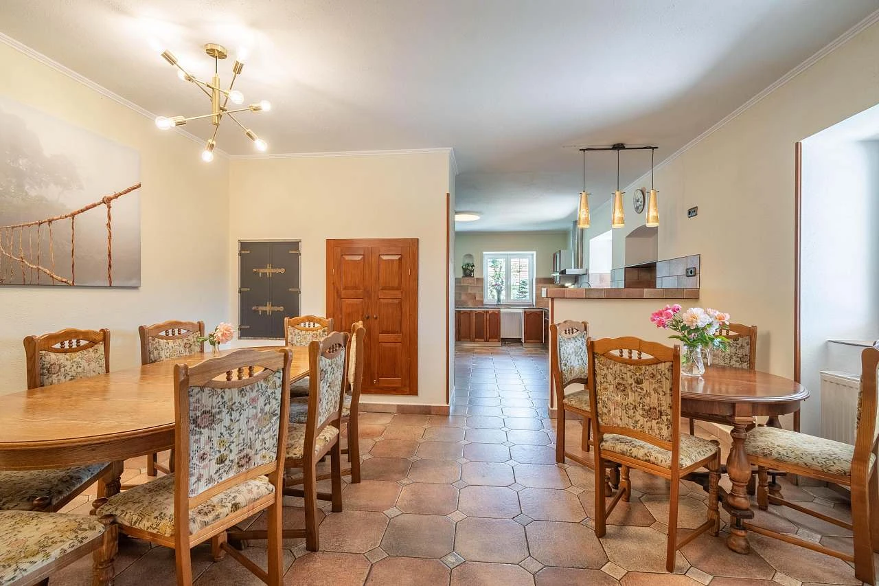 Rekreační dům k pronajmutí poskytuje ubytování pro 6 až 30 osob v 9 ložnicích.