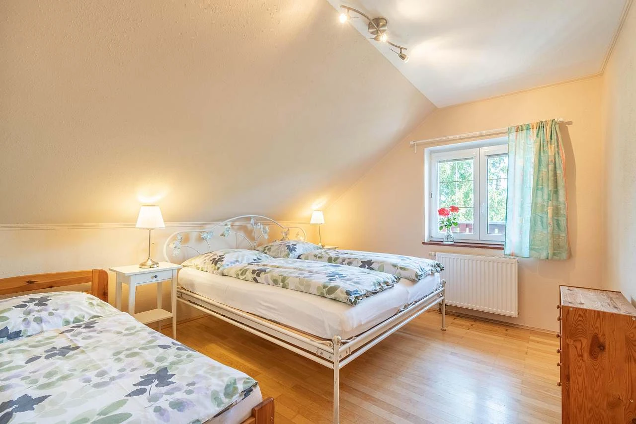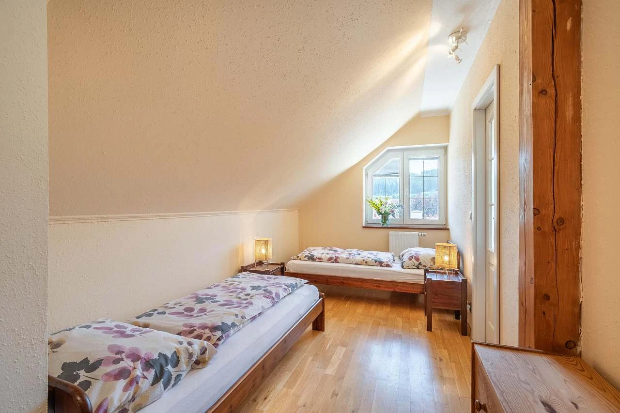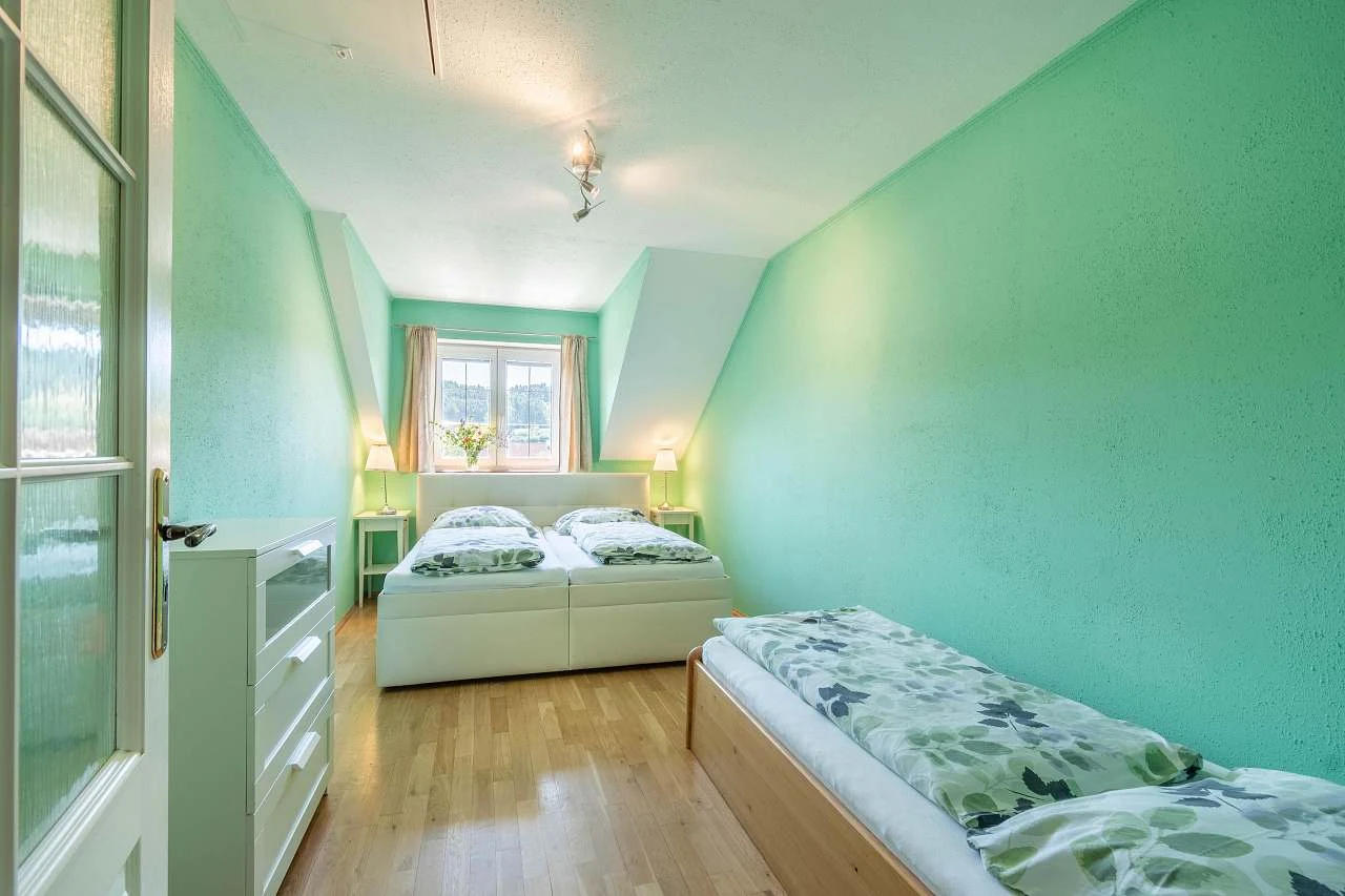 Pokoj č. 3 - 3 lůžka (manželská postel 180cm) + 1 lůžko + 1 přistýlka = matrace.