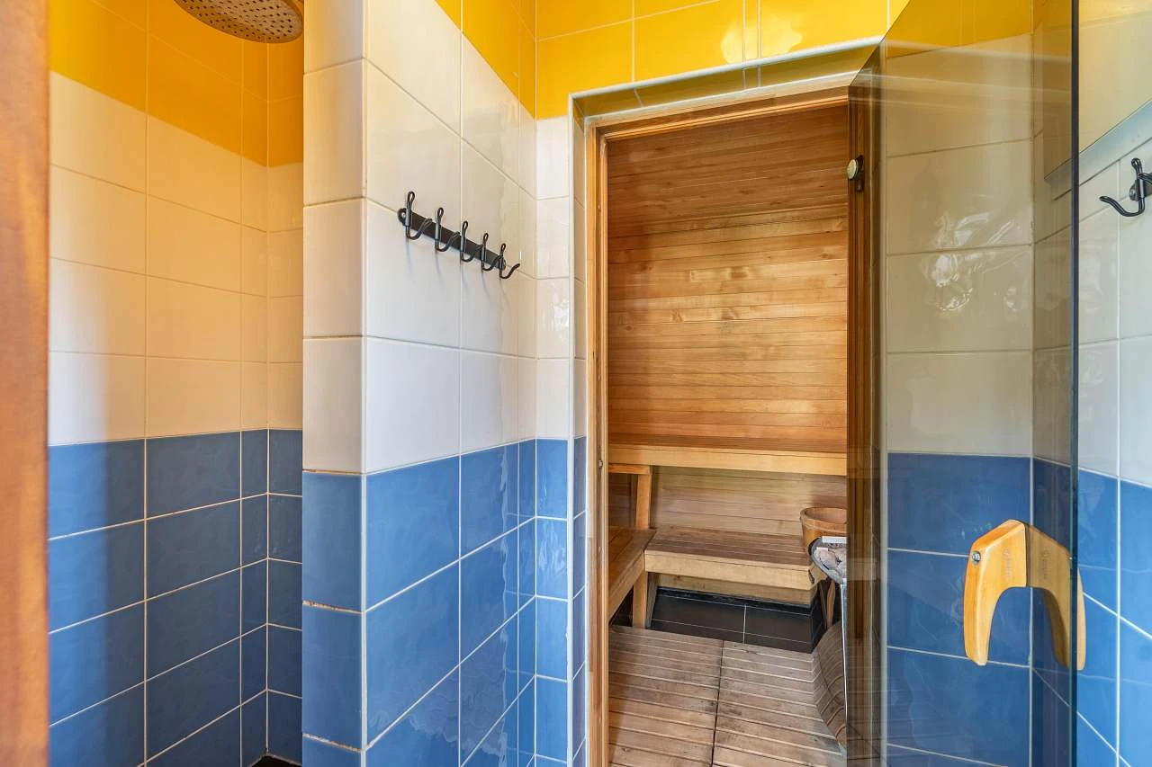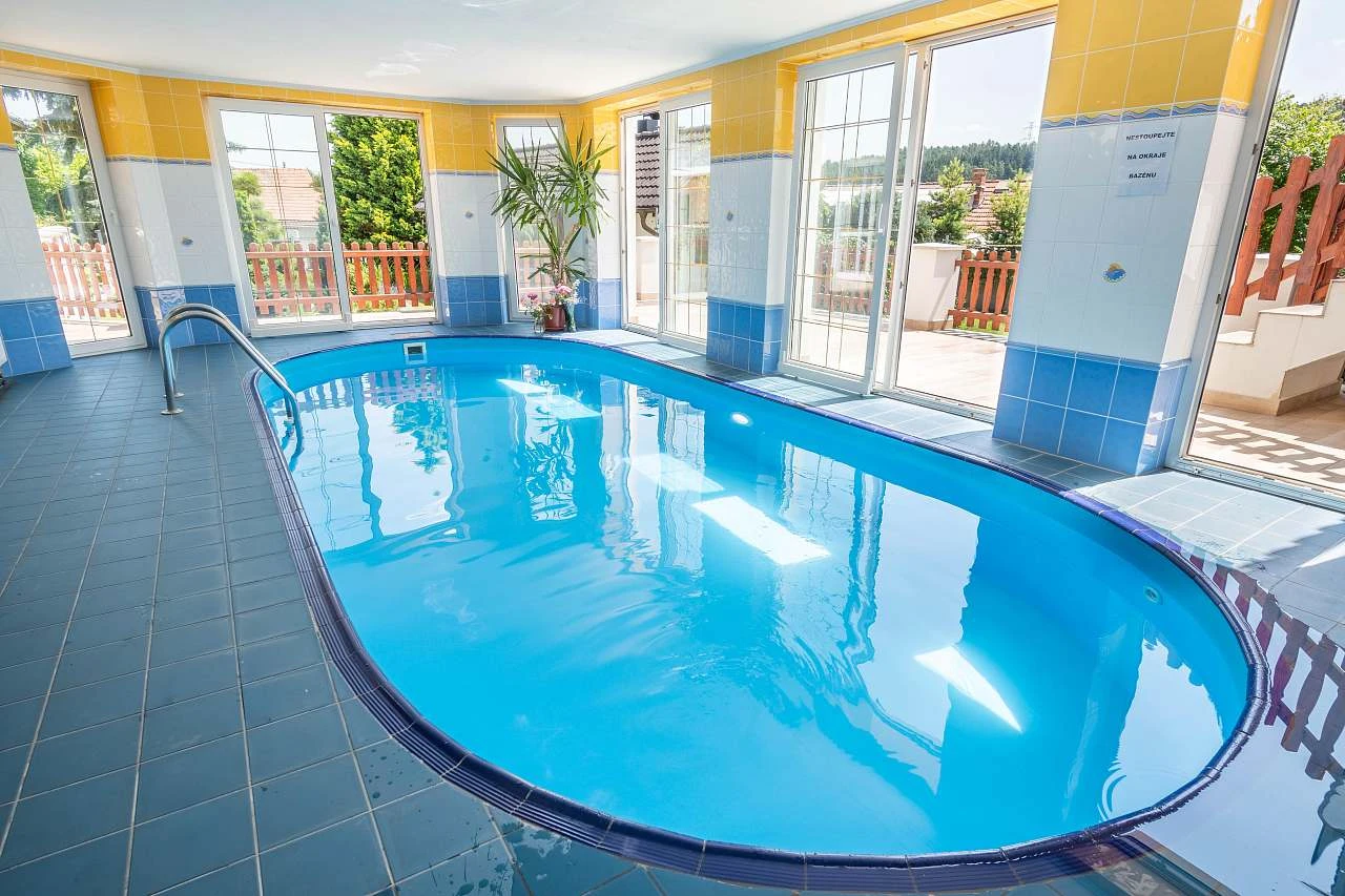 K dispozici je vyhřívaný vnitřní bazén o rozměrech 7 x 3 m s osvětlením a finská sauna pro 4 osoby.