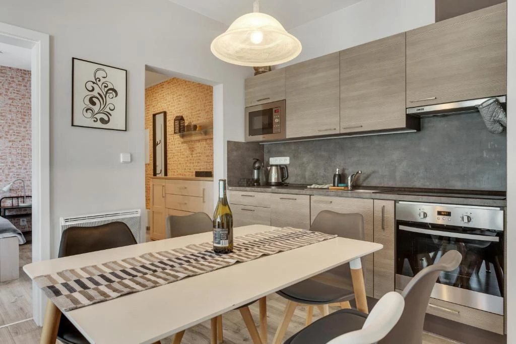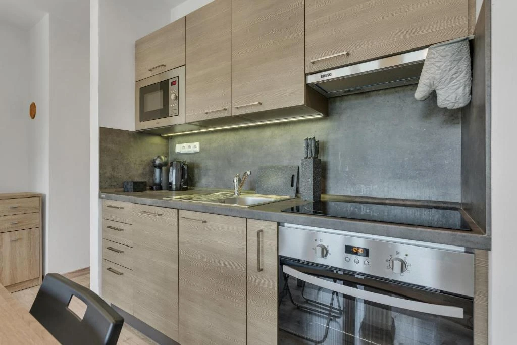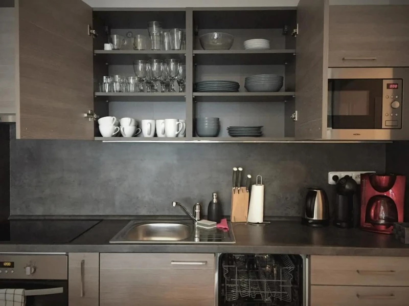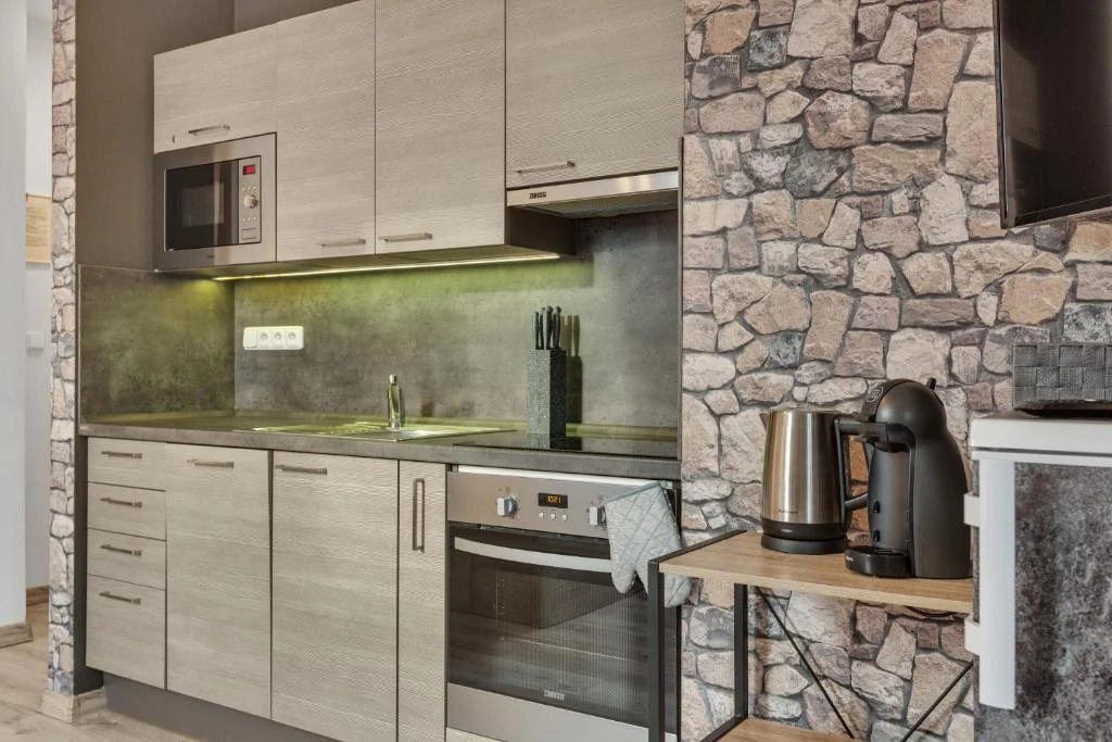 Ve všech apartmánech najdete plně vybavený kuchyňský kout: