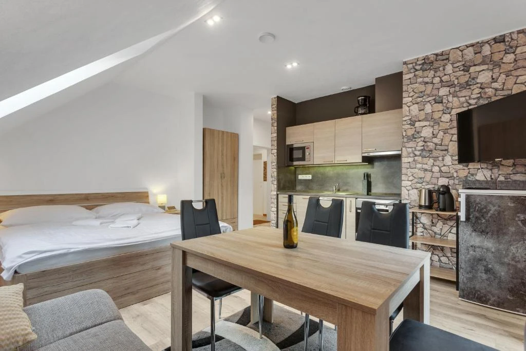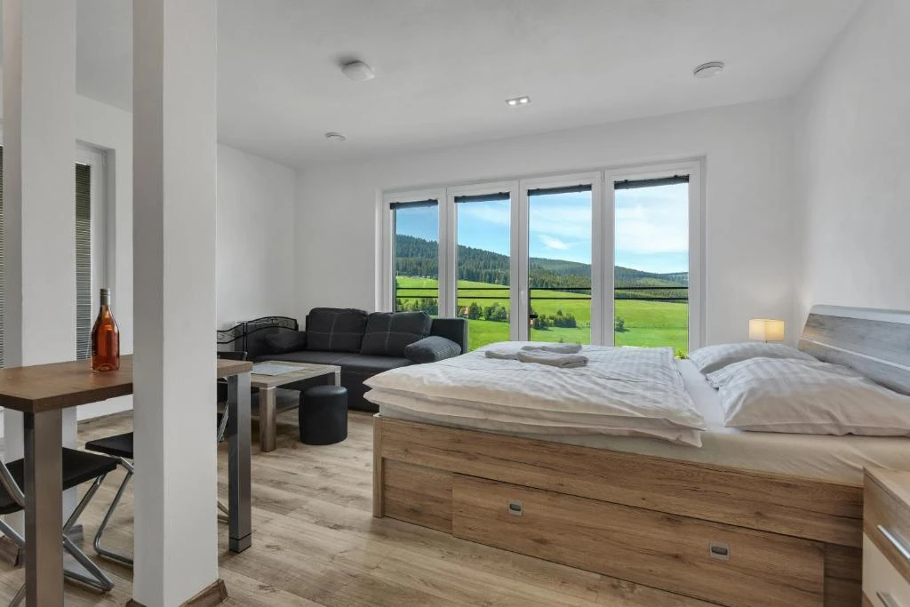 Naše apartmány nabízí skvělé zázemí pro páry, rodiny i větší skupiny, které hledají komfort a soukromí. Každý apartmán má vlastní styl a výhled, ať už na malebnou krušnohorskou krajinu nebo přímo na majestátní Klínovec, a poskytuje ideální podmínky pro relaxaci po dni plném dobrodružství.