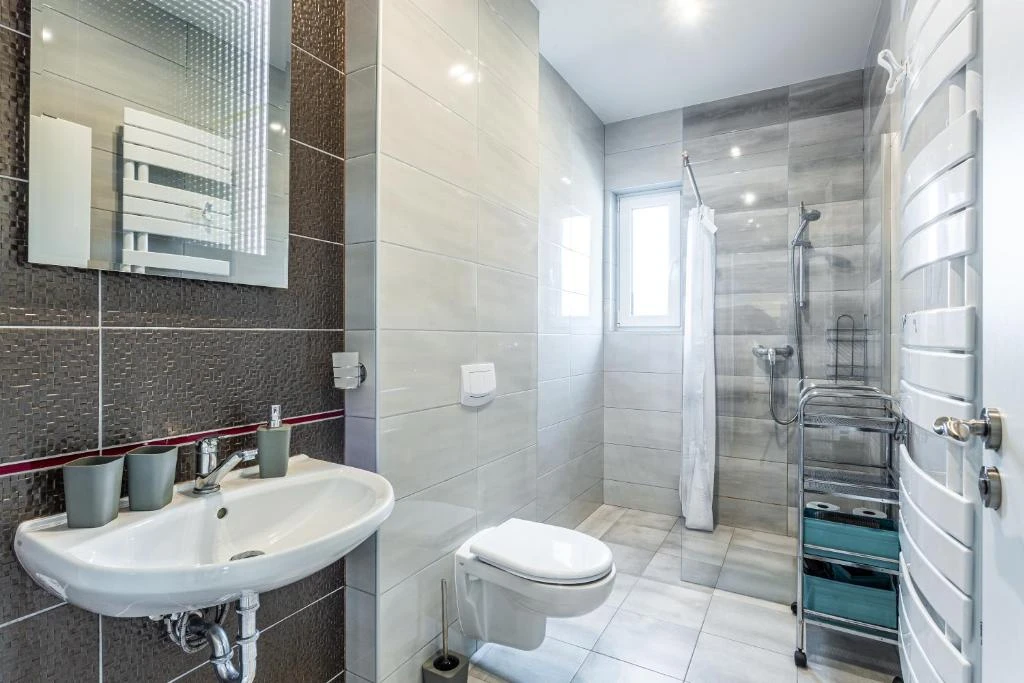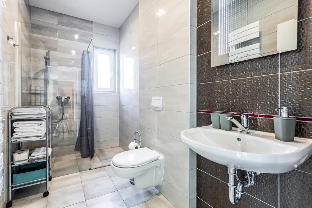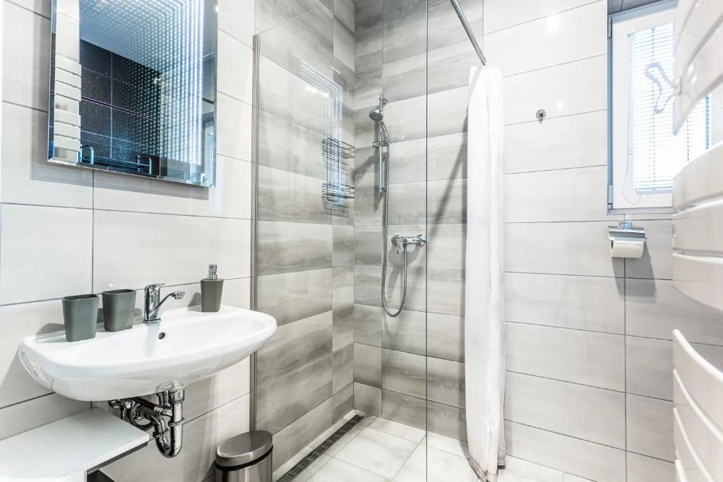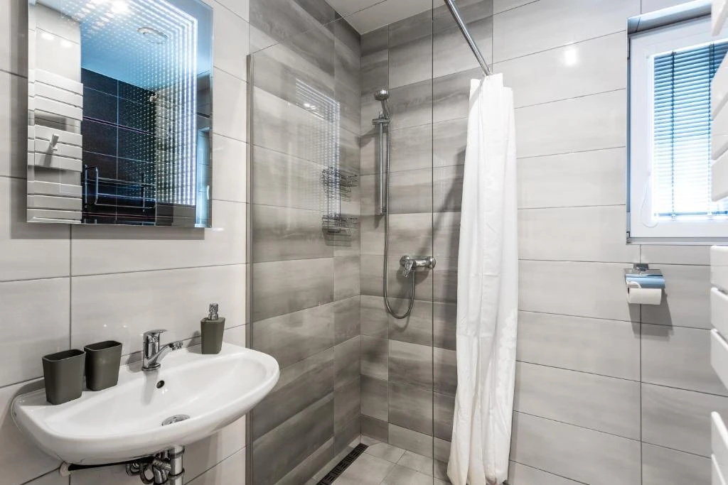 Koupelny jsou vybaveny sprchovým koutem, toaletou, umyvadlem, fénem a dávkovačem mýdla. Na uvítanou hosté obdrží kapsle do kávovaru, utěrky a malou pozornost – welcome drink.