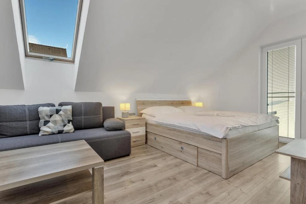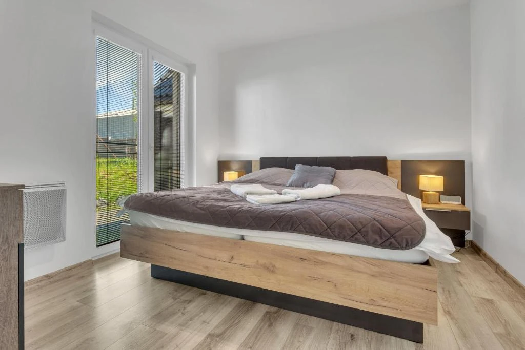 - Ložnice s manželskou postelí a rozkládacím gaučem.