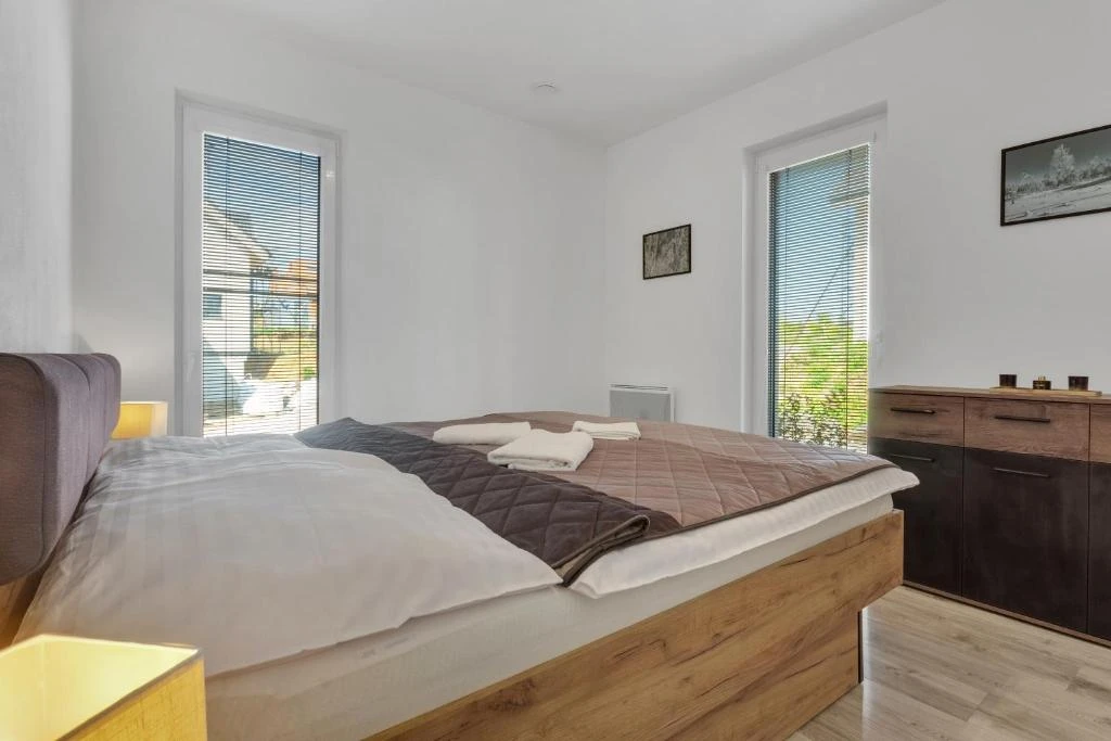 - 2 ložnice s manželskými postelemi (možnost dětské postýlky).